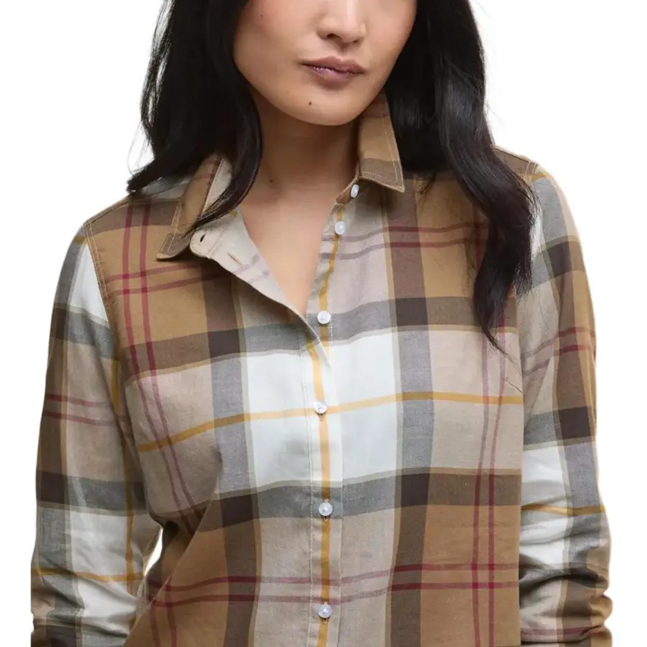 Клетчатая хлопковая рубашка BARBOUR, бежевый
