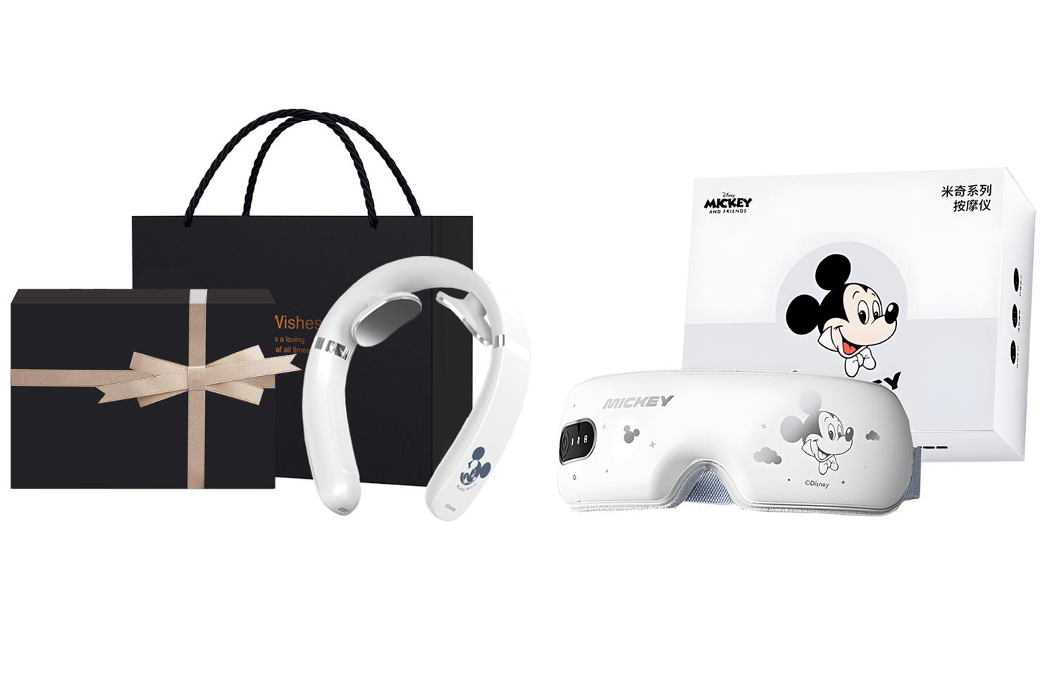 Комплект: шейный ортез F20 «Микки Маус» с голосовым управлением, белый + черный, упаковка ручной работы + ортез для защиты глаз «Микки Маус»