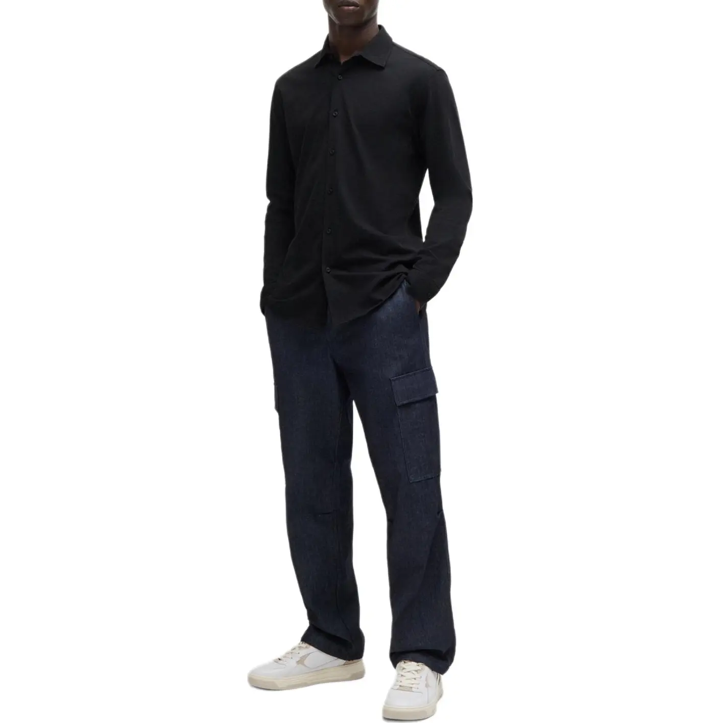 Боссовая хлопковая рубашка HUGO BOSS, черный