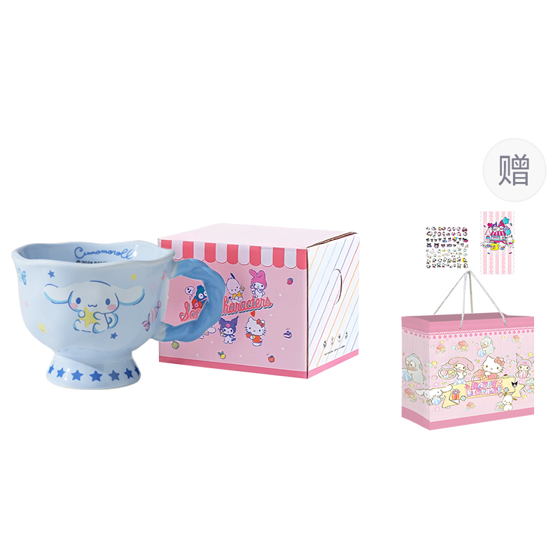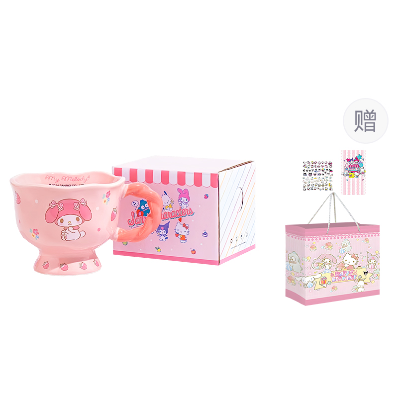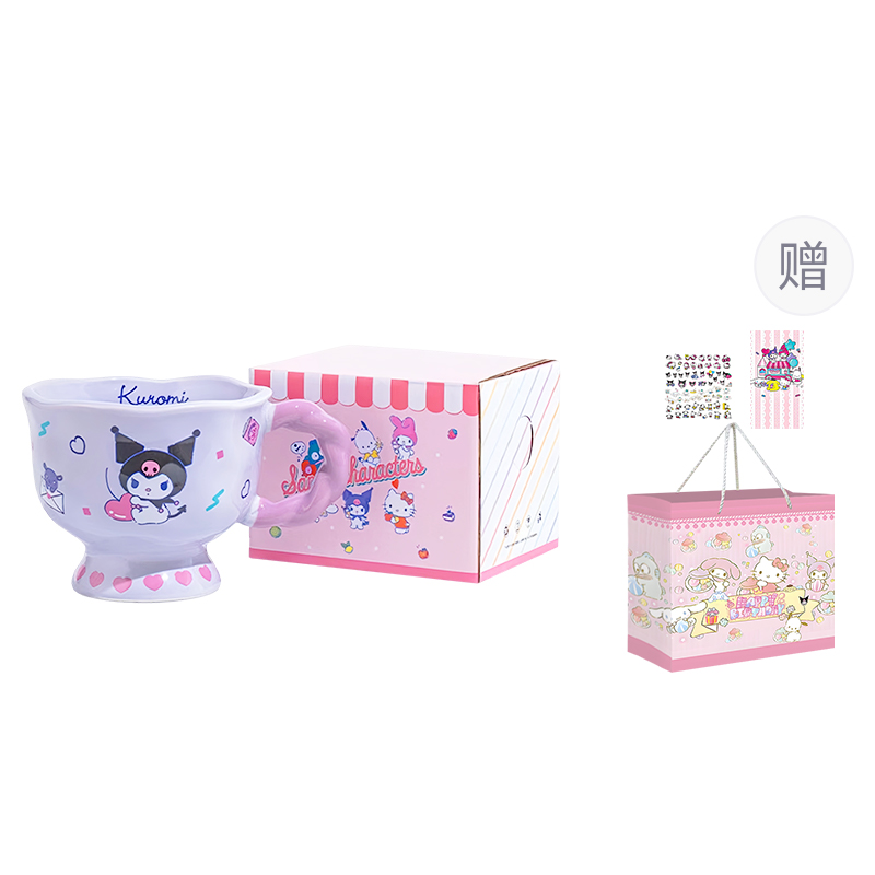 Комплекты одежды: Кружка Sanrio с приподнятым дном SJ8512-1 (Kuromi + поздравительная открытка с наклейкой на сумке)