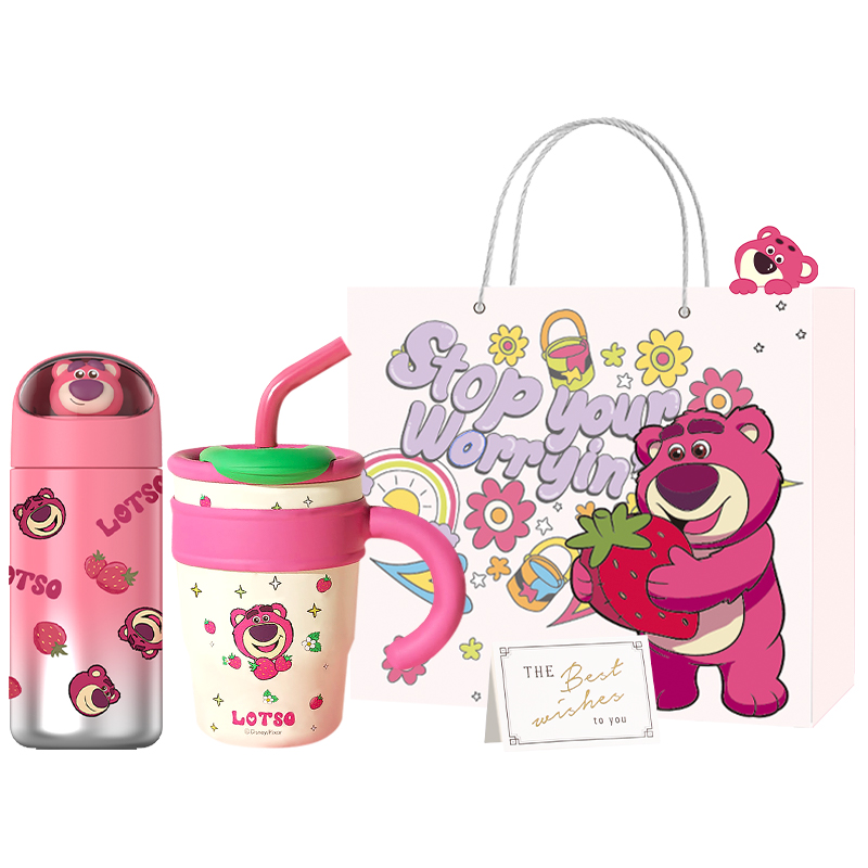 Набор: Двухразовая термокружка «Клубничный мишка» [Подарочный набор LOVE Pure Love]