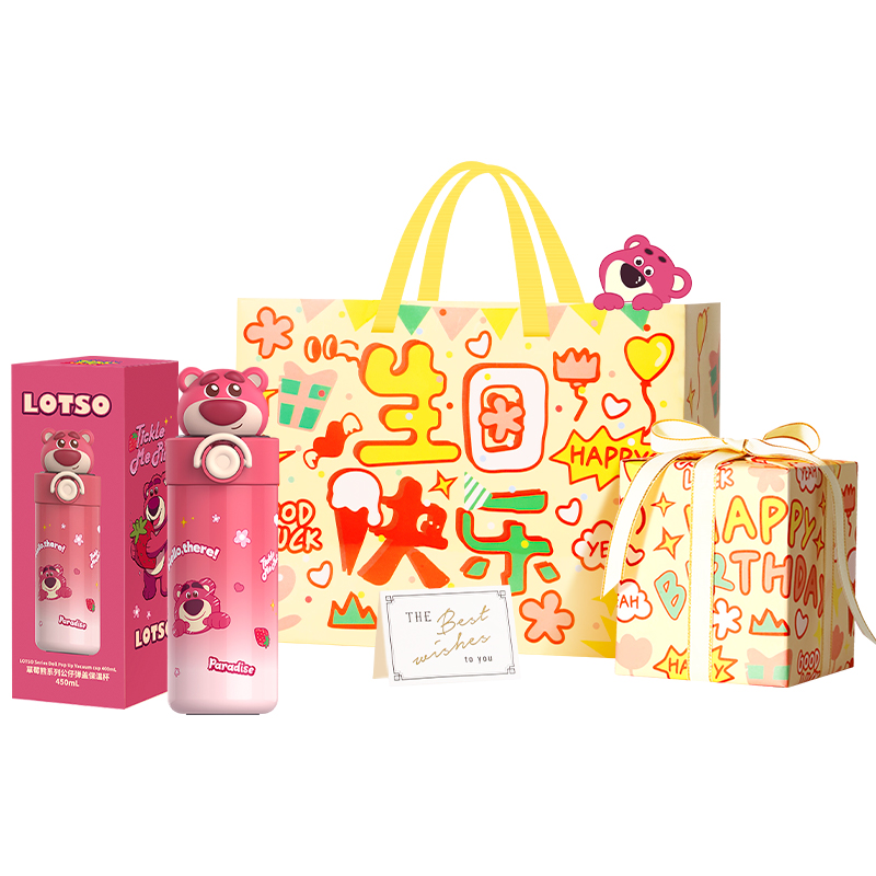 Набор: плюшевая термокружка «Клубничный мишка» [Ограниченный набор сумок для покупок «Happy Birthday»]