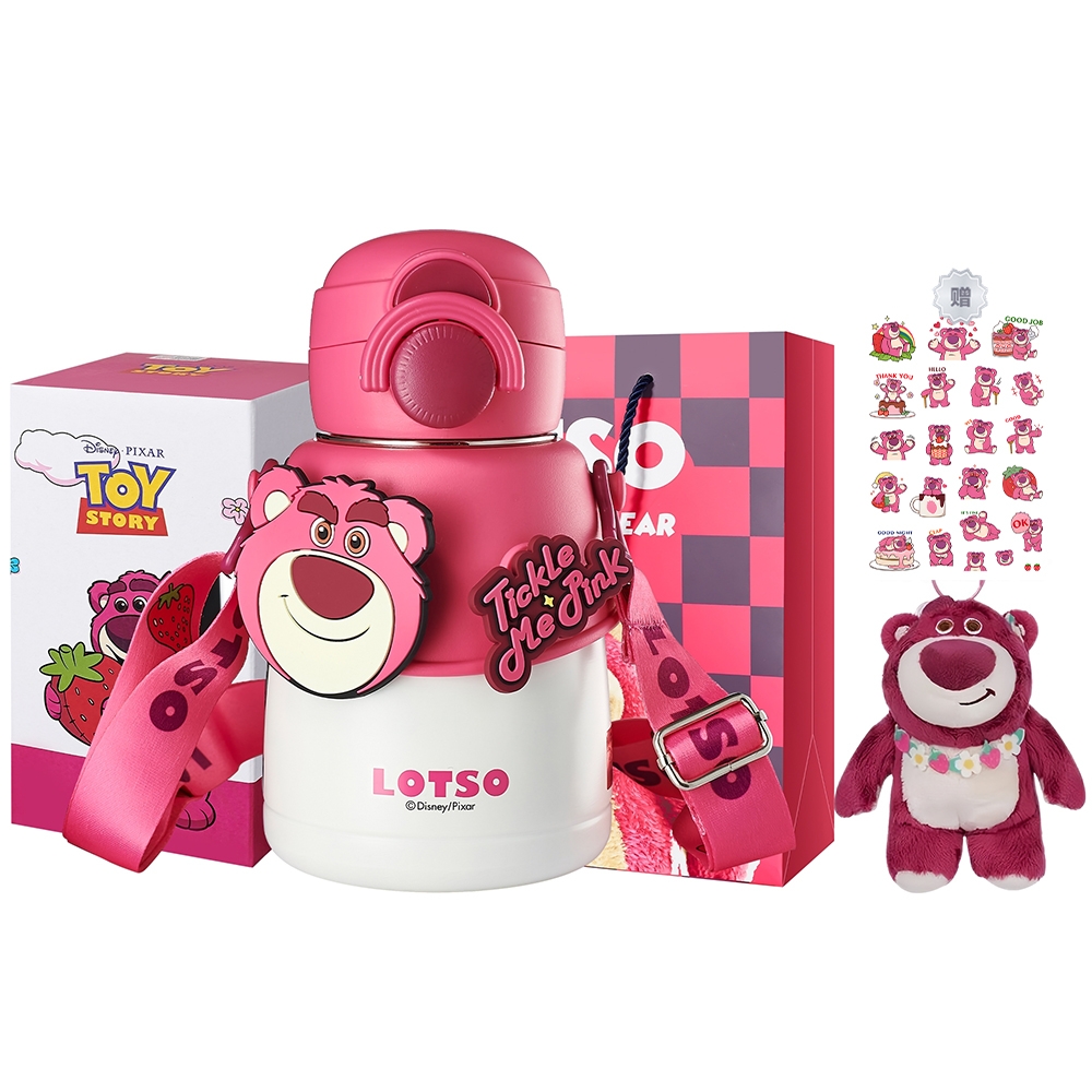 Цвет: Lotso Rose Red. Двухразовые термостаканчики + сумка для покупок + плюшевые подвески [в комплекте щетка для мытья стаканчиков + наклейки]