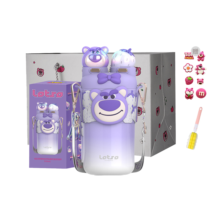 Цвет: Lotso Purple, двухстенная термокружка + сумка для покупок (в комплекте щетка для мытья стакана + щетка для трубочки + наклейки)