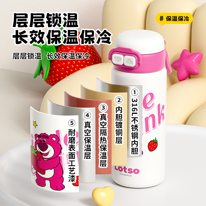 Цвет: 600 мл, розовый, двойной стакан Lotso, с чехлом для стакана и щеточкой для чистки стакана