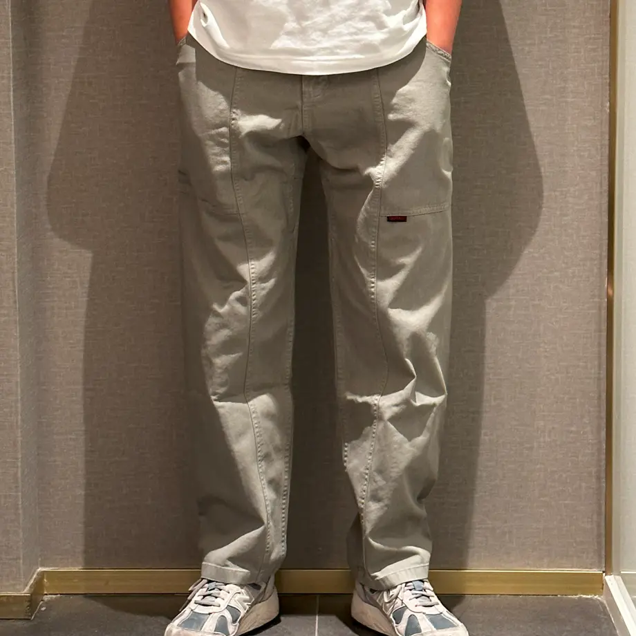 Брюки Gadget сохраняют функциональность, необходимую для альпинизма, и при этом адаптированы к современному образу жизни. Умеренно свободный силуэт подходит как для скалолазания, так и для повседневной городской жизни. Большие карманы, простирающиеся от передней части до задней, обеспечивают достаточно места для хранения различных инструментов. Основная ткань - прочный хлопковый твил, а карманы - из прочного брезента для лучшей поддержки веса. Контраст между двумя материалами дополнительно подчеркивается разной техникой окрашивания. Правый карман декорирован фирменной жаккардовой тесьмой для подвешивания брелоков и других мелких аксессуаров.