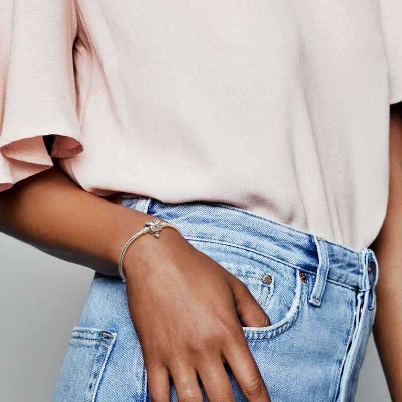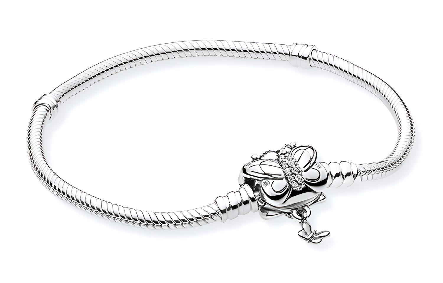 Этот браслет-цепочка в форме змейки из стерлингового серебра 925 пробы дарит вам красоту бабочки. Изящная застежка выполнена в форме культового насекомого - кота Пандоры - и украшена декоративными крыльями, камнями и подвесками.