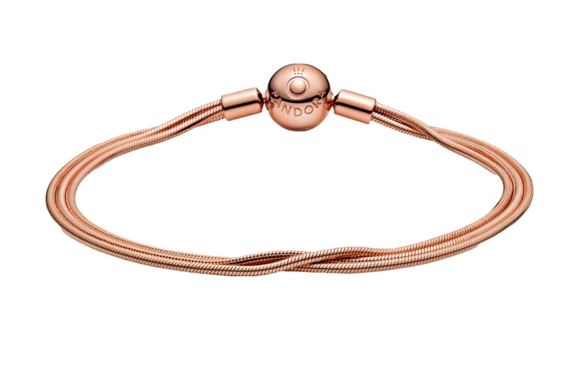 Добавьте металлического шарма в свой образ, дополнив его многорядным браслетом-змейкой Pandora Moments. Этот шедевр ручной работы, изготовленный из Pandora Rose (уникального медно-серебряного сплава), состоит из трех изящных цепочек-змейок и застежки-шарма, украшенной культовым логотипом и монограммой Pandora. Наденьте на этот браслет-змейку свои любимые шармы Pandora Moments, чтобы создать образ, соответствующий обычному браслету Pandora Moments - стильный, современный и неподвластный времени.