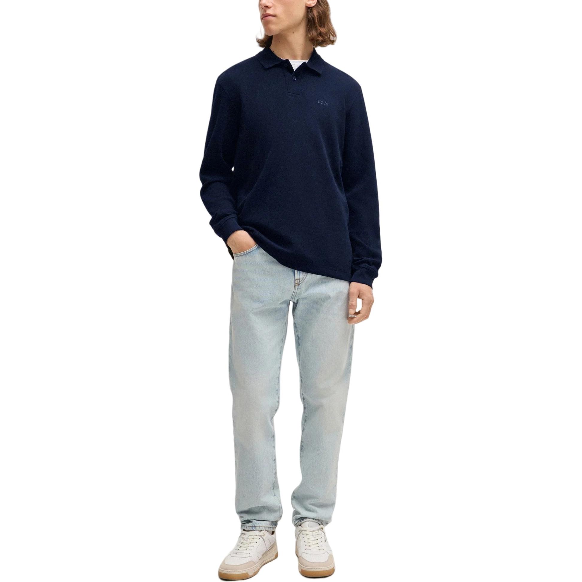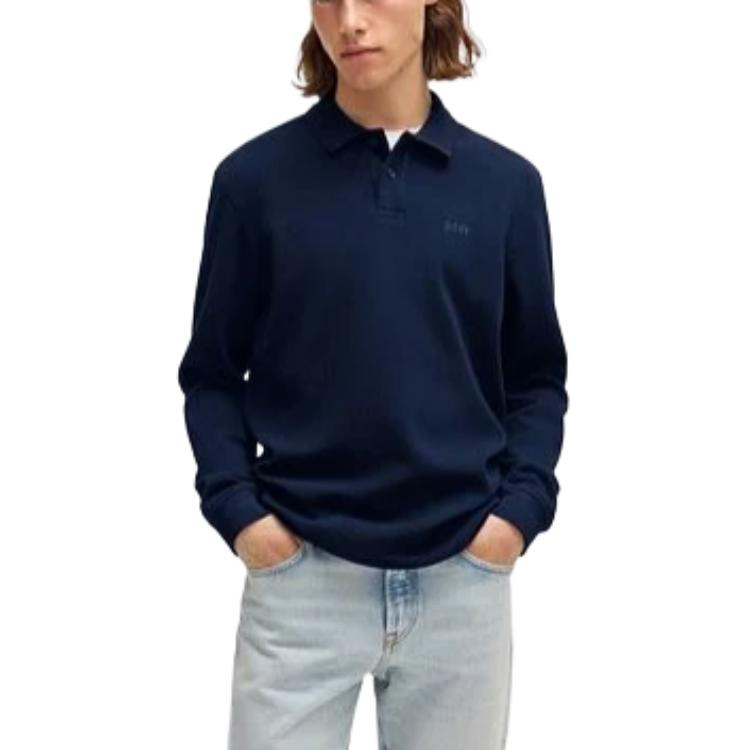 Длинный рукав вязаное поло HUGO BOSS, синий