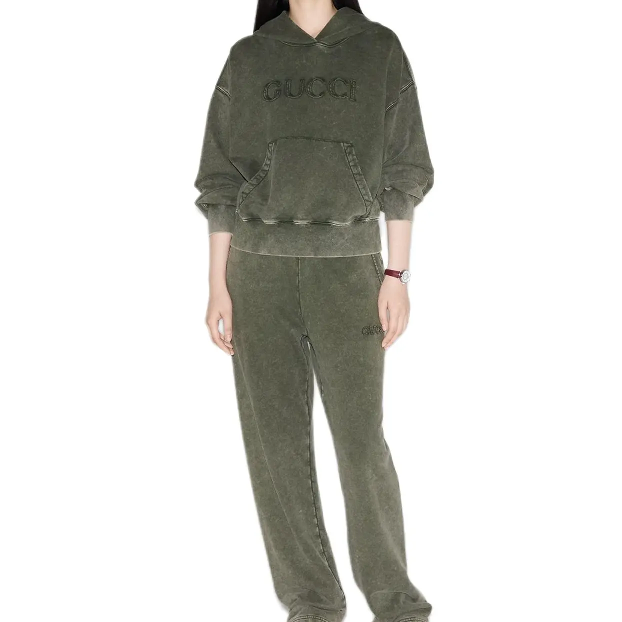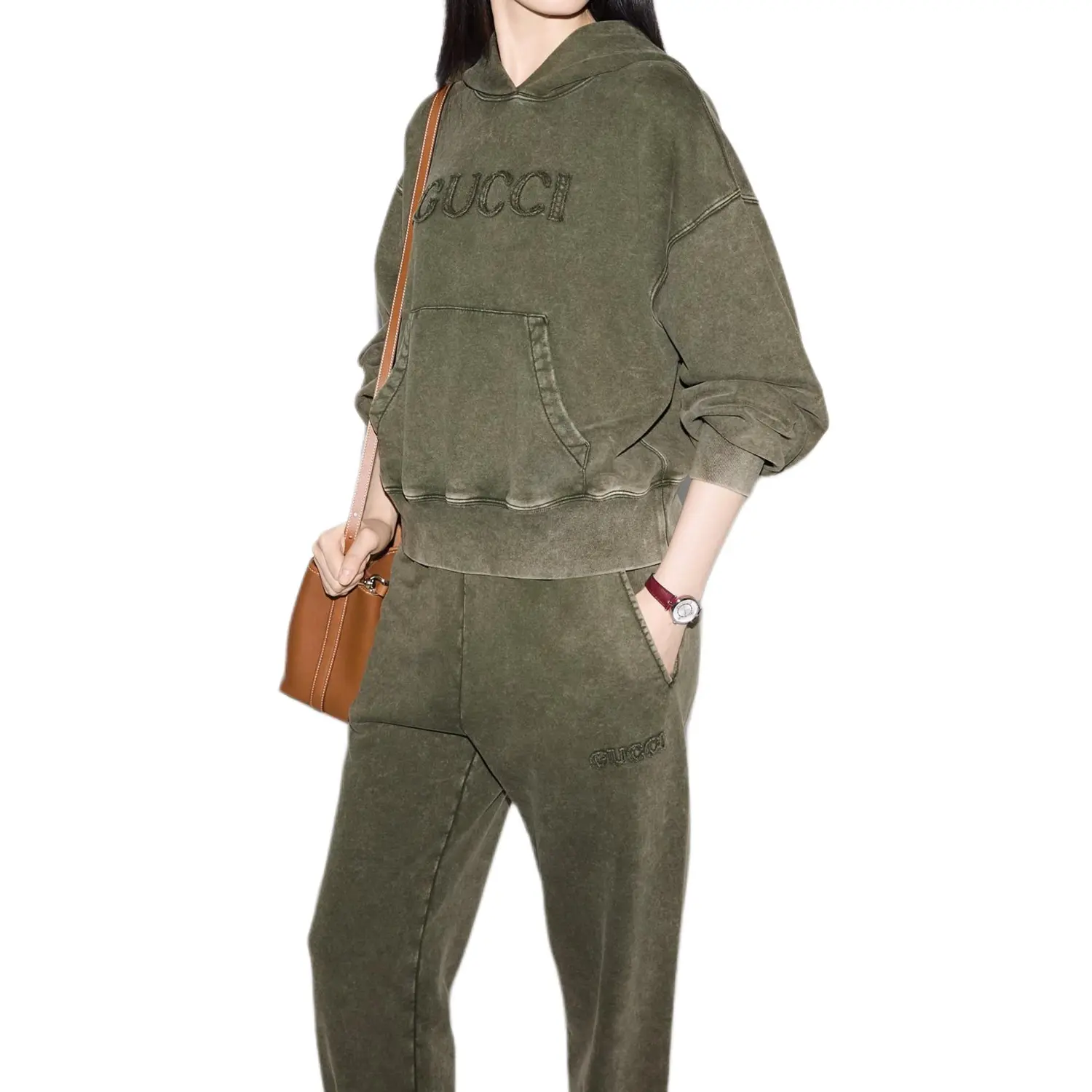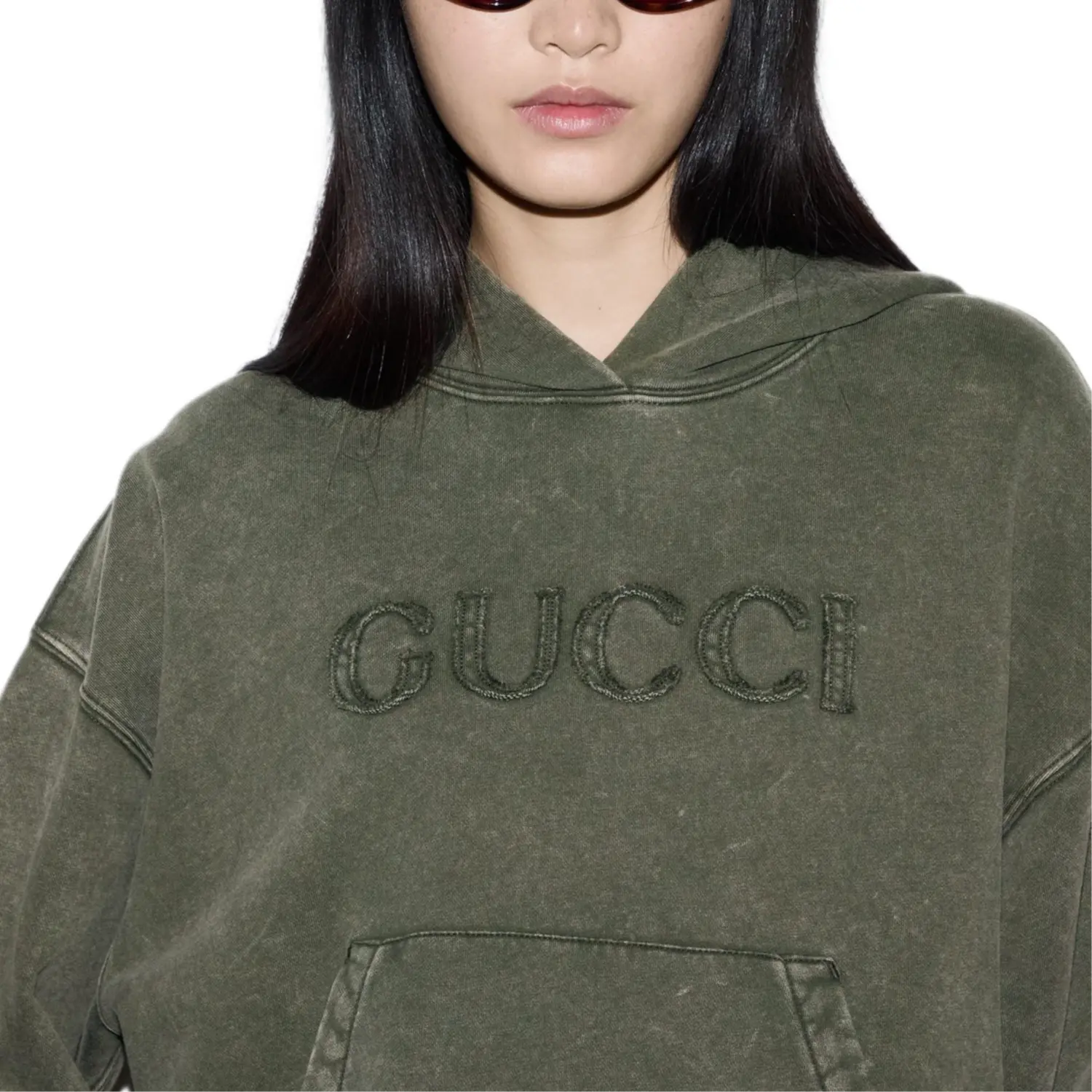 Вышитый хлопковый худи GUCCI, темно-зеленый