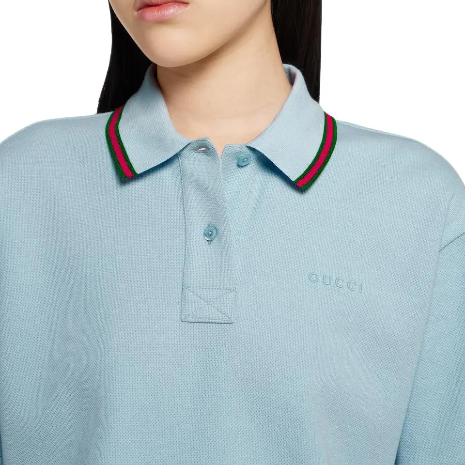 Хлопковая пике поло с вставкой GUCCI, синий 112 387₽