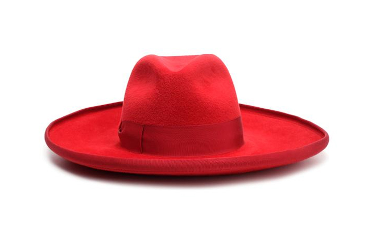 Эта широкополая шляпа изготовлена из красного фетра с отделкой из репсовой ленты в тон и вышитыми деталями в виде двойной буквы G, вдохновленными нарядами певицы и автора песен Дженис Джоплин.
