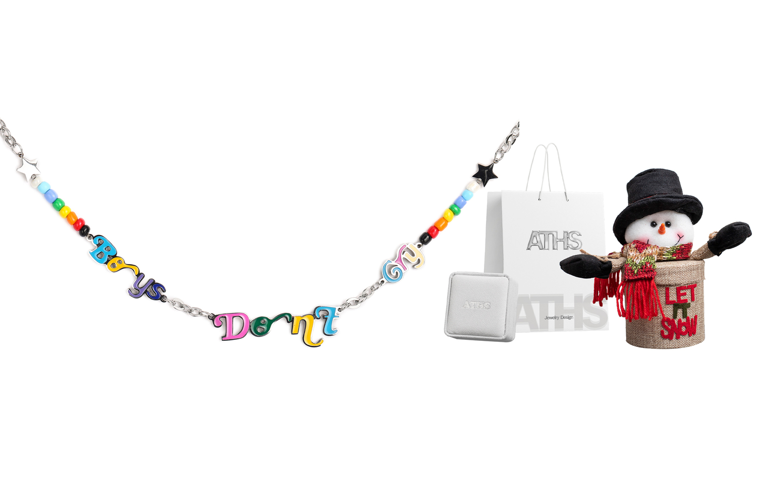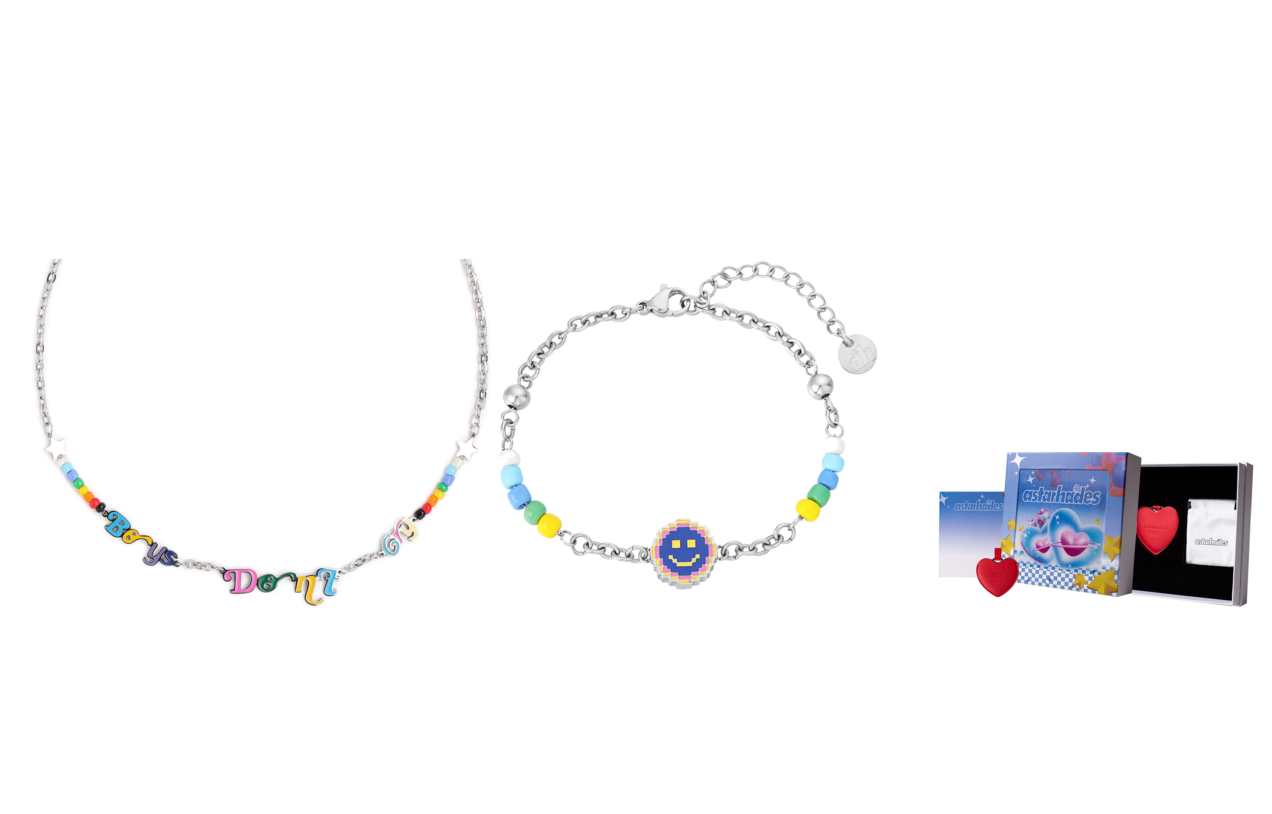 Комплект: разноцветное ожерелье из бусин + браслет из синих бусин со смайликом. Подарочная коробка «Синяя любовь».