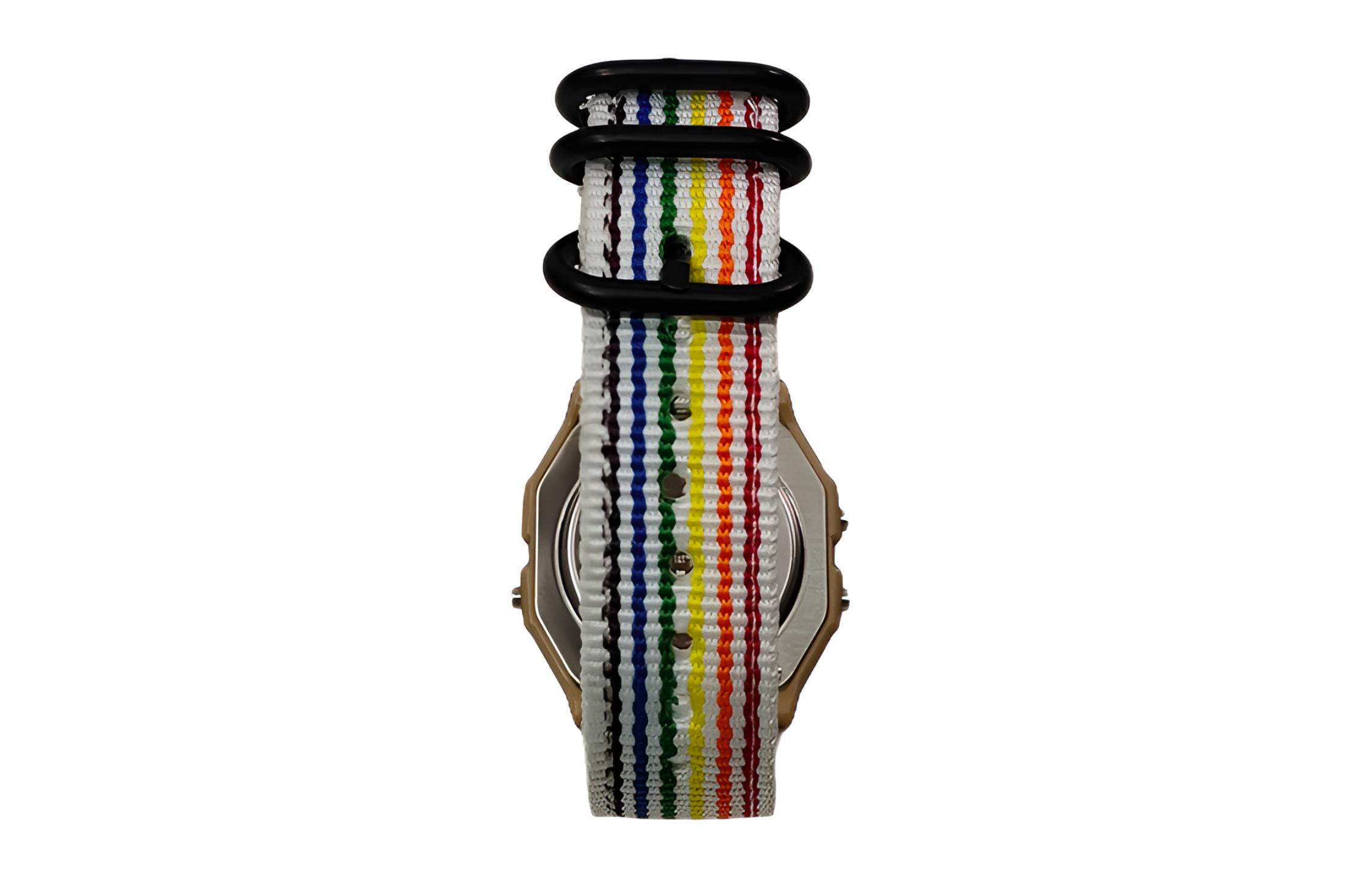 Цвет циферблата: Белый многоцветный ремешок с многоцветными горизонтальными полосами на циферблате