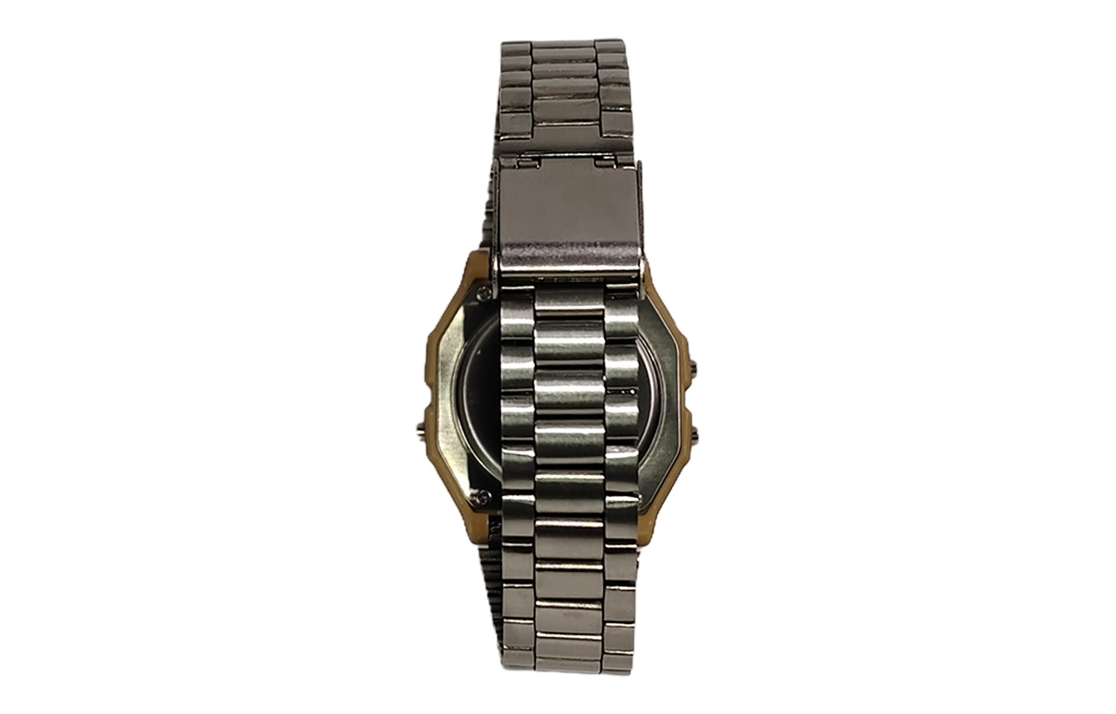 Цвет циферблата: серебристый ремешок с желто-розовой градиентной линзой