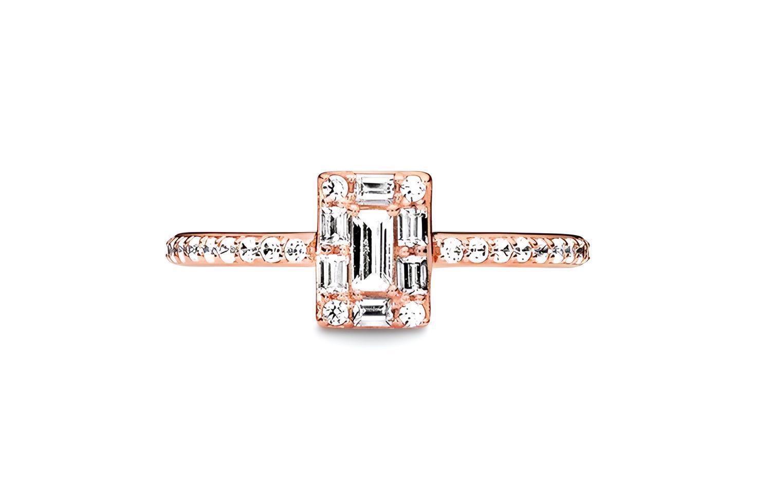 Это вневременное и элегантное кольцо Pandora Rose (уникальный медно-серебряный сплав) непременно привлечет к себе внимание. Оно украшено кубическими цирконами круглой и прямоугольной огранки, которые притягивают свет и сверкают. Небольшие драгоценные камни украшают кольцо, добавляя еще больше блеска этому классическому и универсальному изделию. Носите его отдельно на безымянном или указательном пальце, чтобы привлечь внимание, или сочетайте с другими украшениями, чтобы создать уникальный образ.