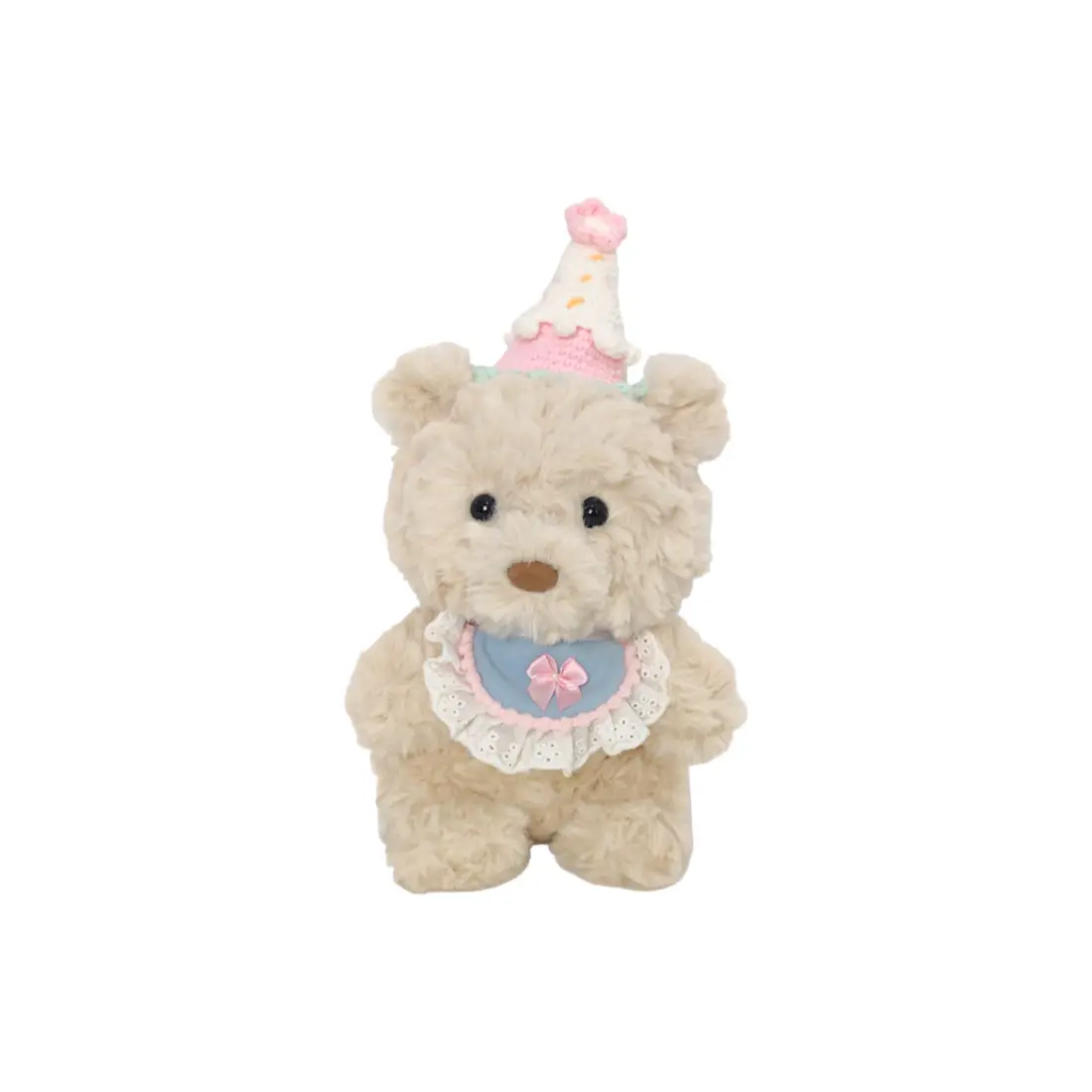 Название продукта: Медвежонок + праздничные шапки и кепки (пряжа) + сине-розовый нагрудник с бантом (ткань)