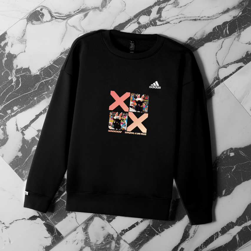 Этот индивидуальный предмет одежды создан на основе оригинальной толстовки с круглым вырезом и длинными рукавами на флисовой подкладке с логотипом Adidas. Оригинальный дизайн, доступный эксклюзивно на Dewu, значительно снижает вероятность того, что кто-то наденет такой же наряд.