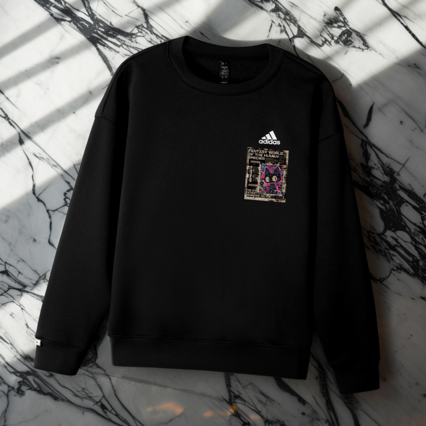 Этот индивидуальный предмет одежды создан на основе оригинальной толстовки с круглым вырезом и длинными рукавами на флисовой подкладке с логотипом Adidas. Оригинальный дизайн, доступный эксклюзивно на Dewu, значительно снижает вероятность того, что кто-то наденет такой же наряд.