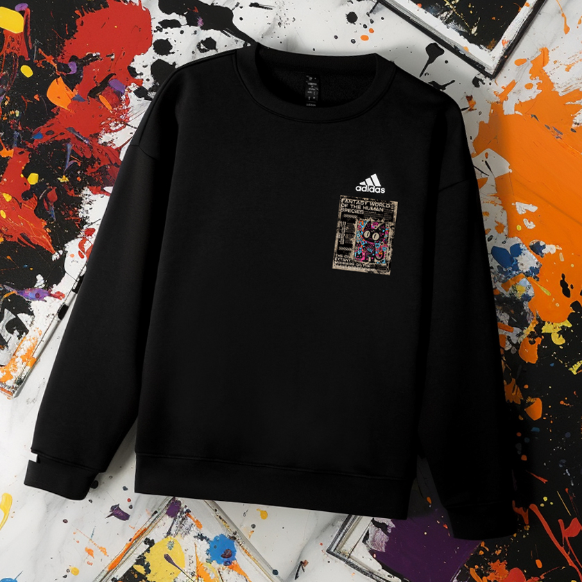 Этот индивидуальный предмет одежды создан на основе оригинальной толстовки с круглым вырезом и длинными рукавами на флисовой подкладке с логотипом Adidas. Оригинальный дизайн, доступный эксклюзивно на Dewu, значительно снижает вероятность того, что кто-то наденет такой же наряд.