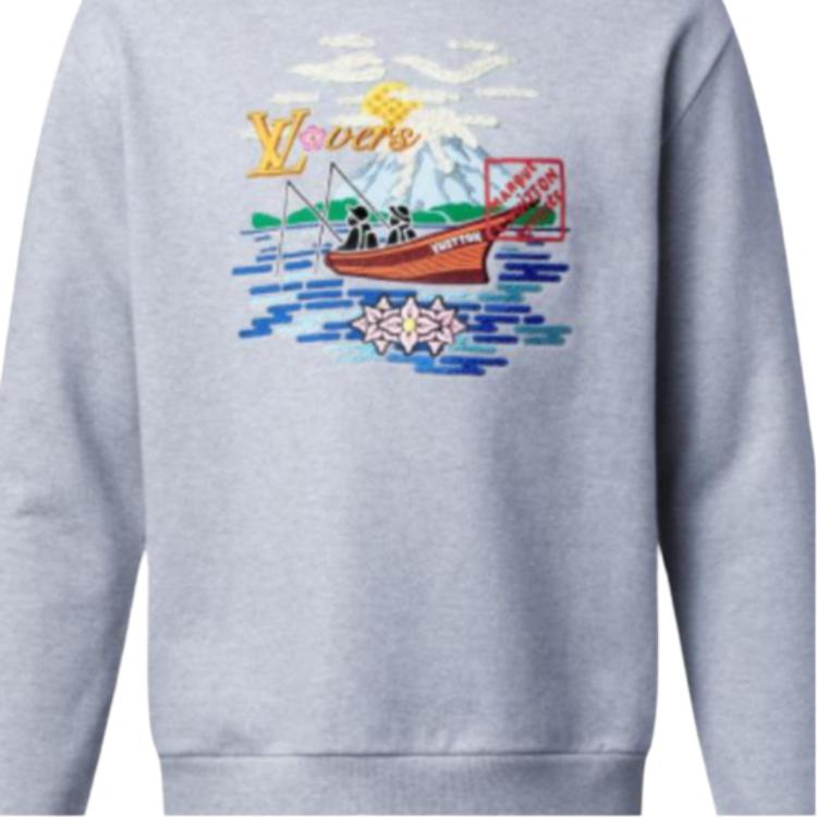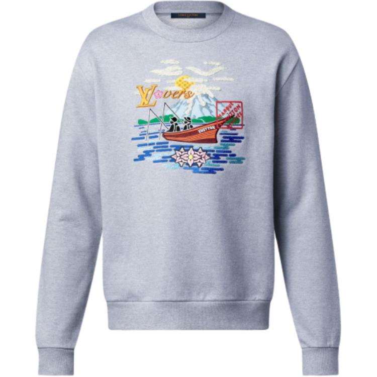 Вышитый свитшот LOUIS VUITTON, серо-голубой