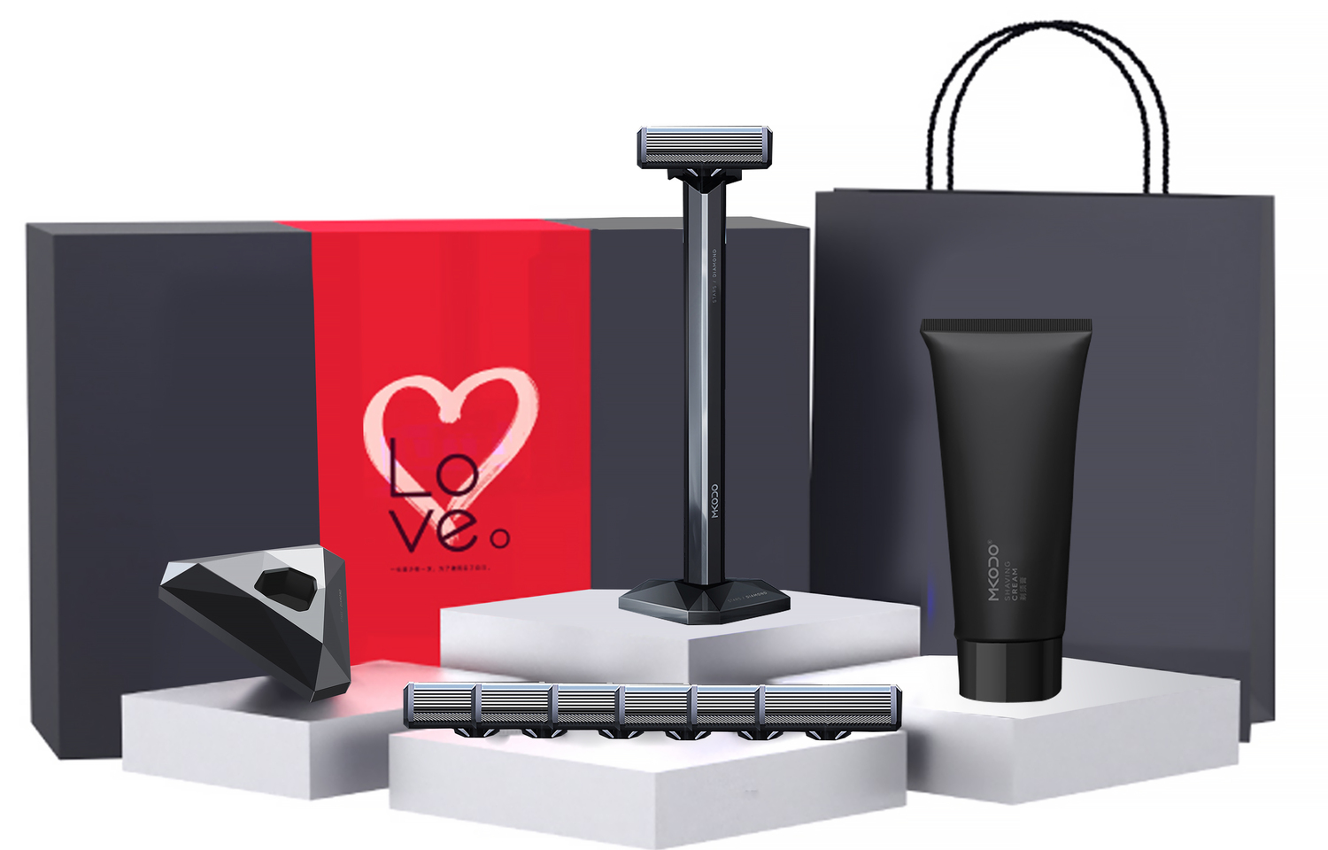 Набор: Star Diamond Black S1 + подарочная коробка ко Дню святого Валентина + 2 бритвенные головки + крем для бритья + основа