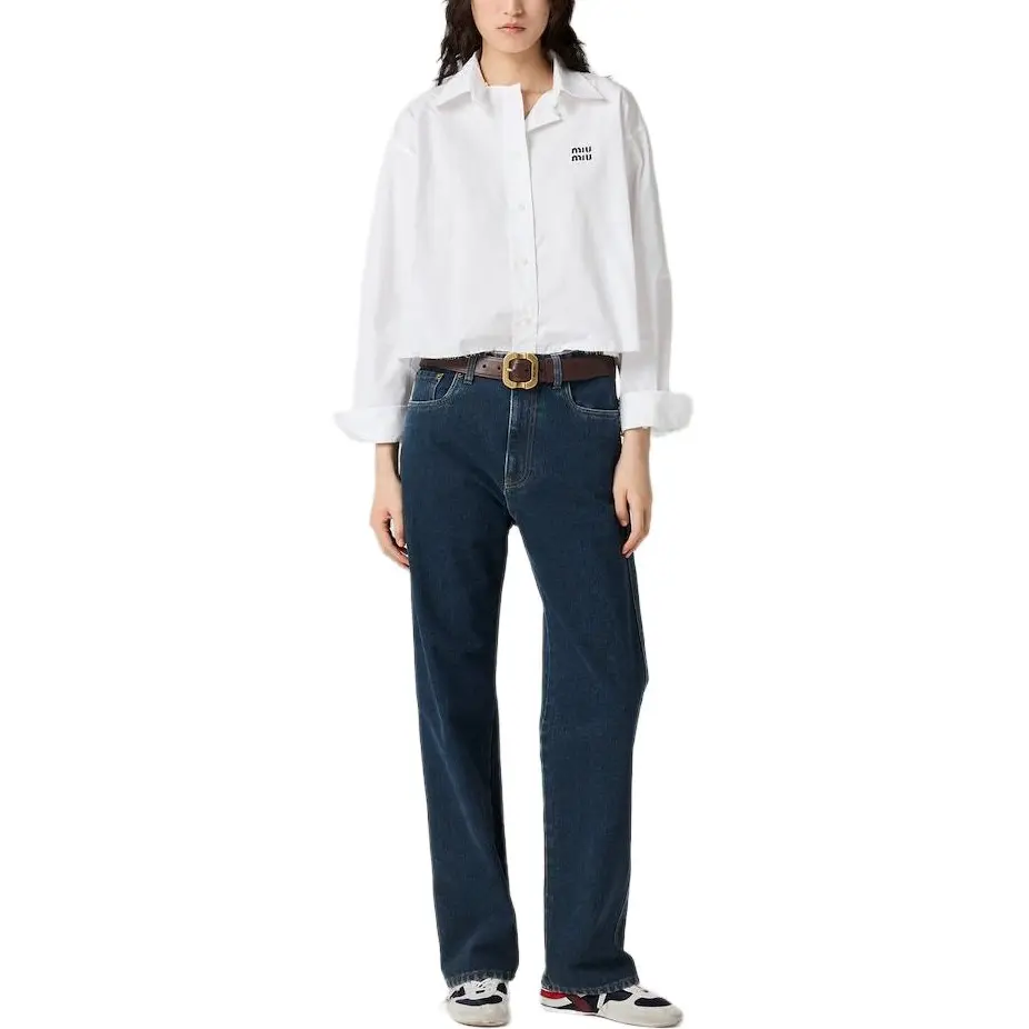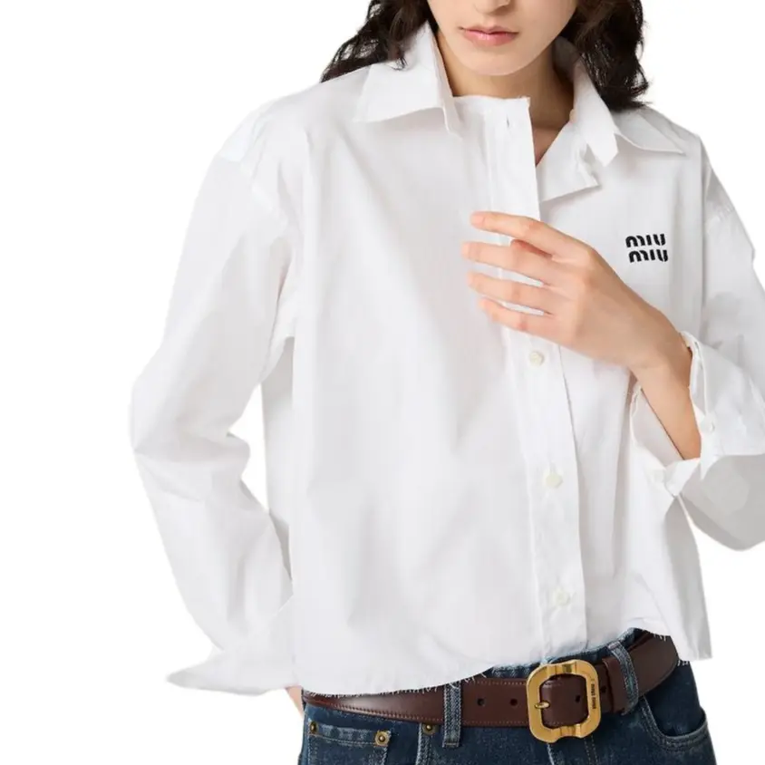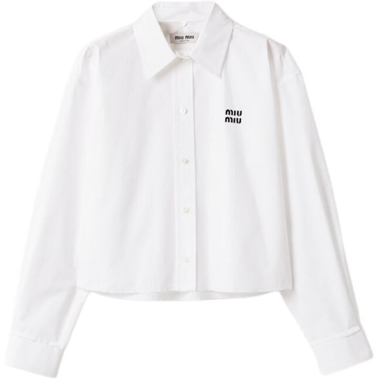 Хлопковая рубашка из поплина MIU MIU, белый