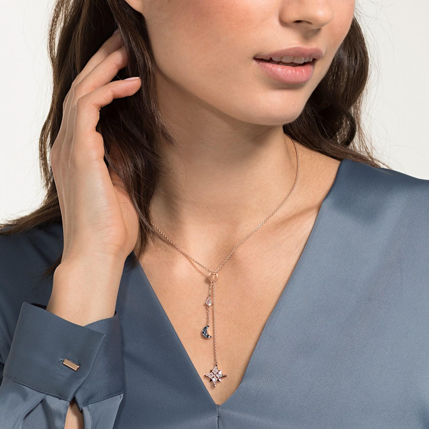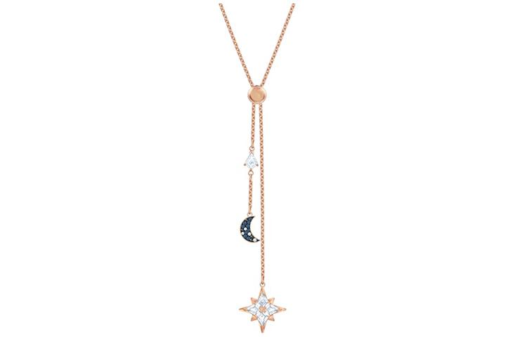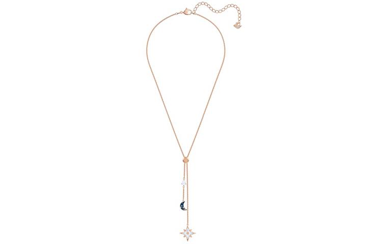 Это элегантное и освежающее Y-образное ожерелье идеально дополнит ваш образ, вдохновленный ночным небом. Луна и звезды символизируют надежду и мечты, а розовое золотое покрытие и изящная инкрустация синими и прозрачными кристаллами Swarovski в паве делают его прекрасным выбором для повседневного аксессуара или подарка.