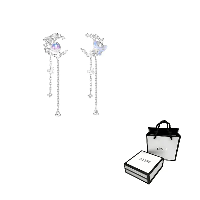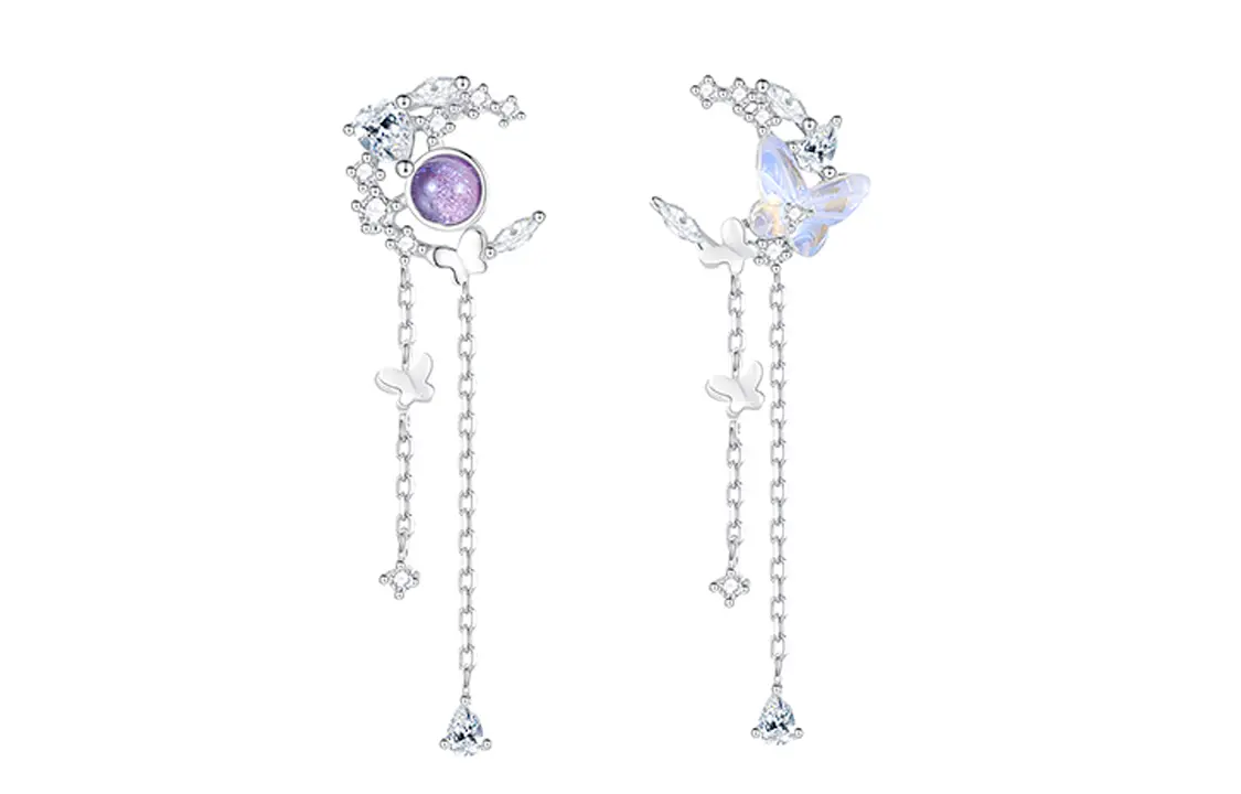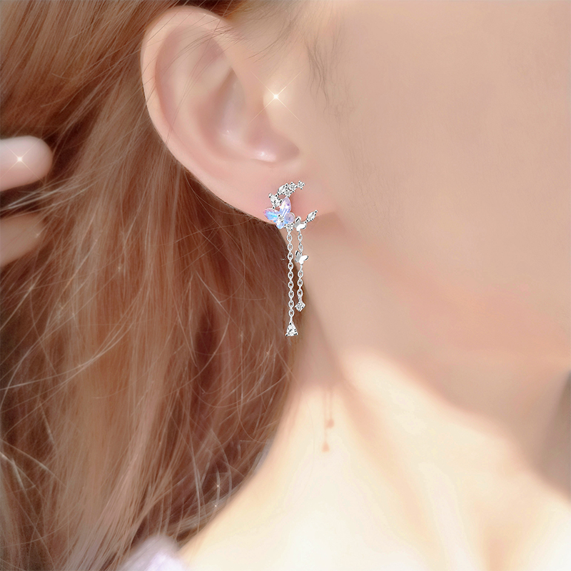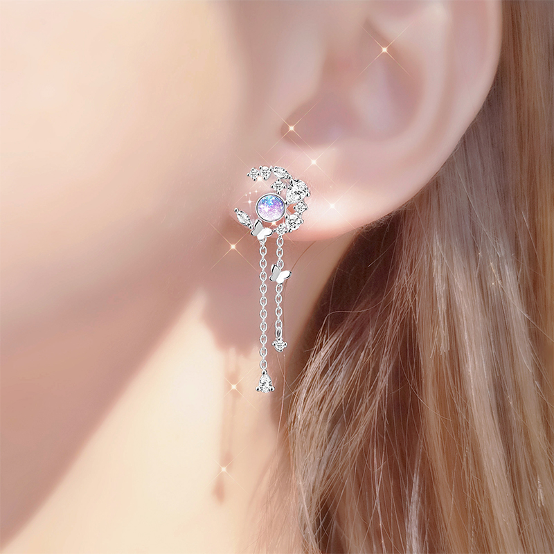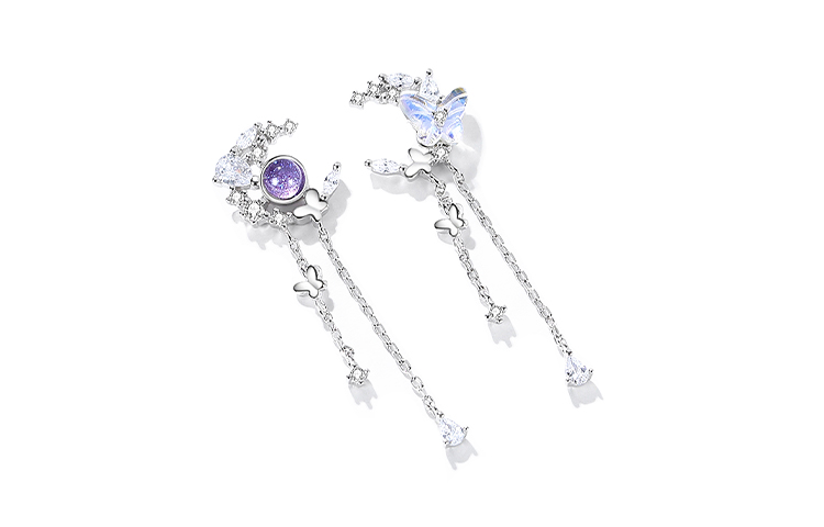 Стиль: Асимметричные серьги-гвоздики с кисточками в виде бабочки