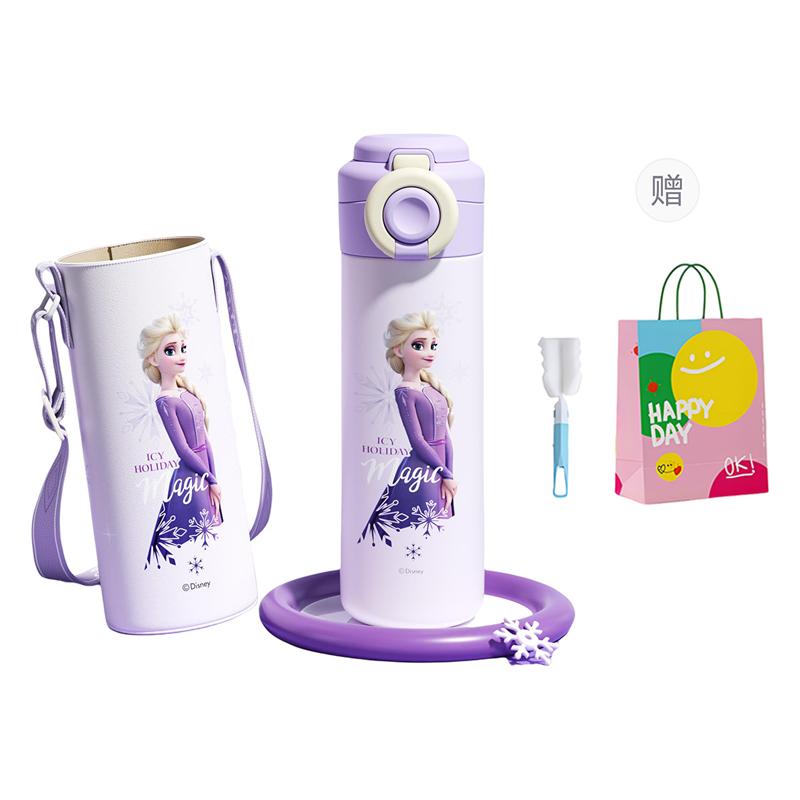 Набор: термокружка небесно-голубого цвета с двойными стенками и принтом Микки Мауса объемом 500 мл с чехлом для чашки, сумкой для покупок и щеточкой для чистки чашки
