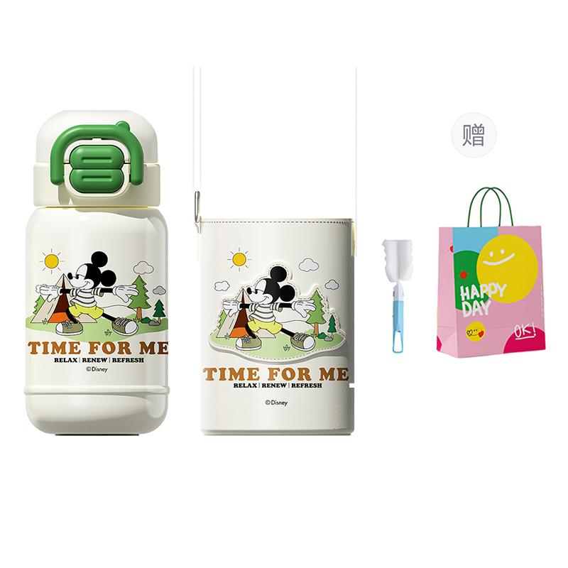 Стиль: Белый и зеленый портативный термос с двумя напитками «Микки» - в комплекте чехол для чашки, сумка для покупок и щеточка для чистки чашки