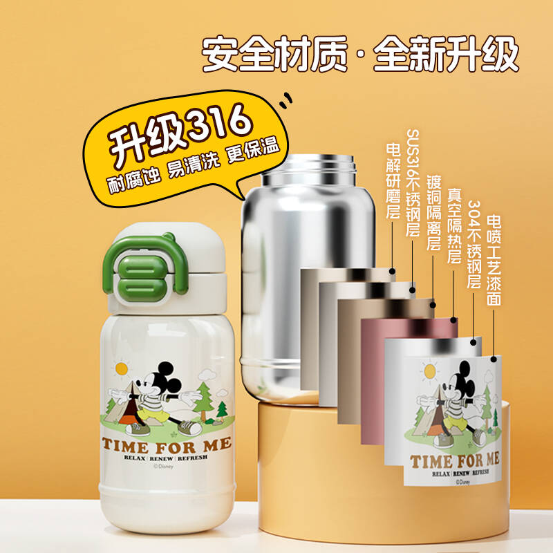 Стиль: Двойной напиток, зеленый Микки Маус, 480 мл (с чехлом для чашки того же стиля)