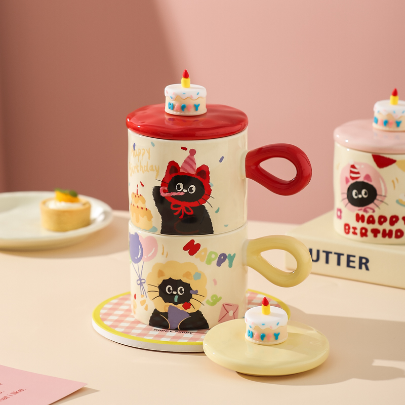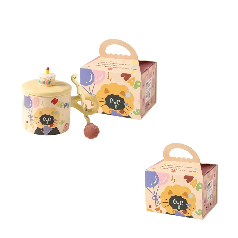 Набор: 360 мл [Чаша желаний - желтая] Цветочный кот + Цветочная ложка