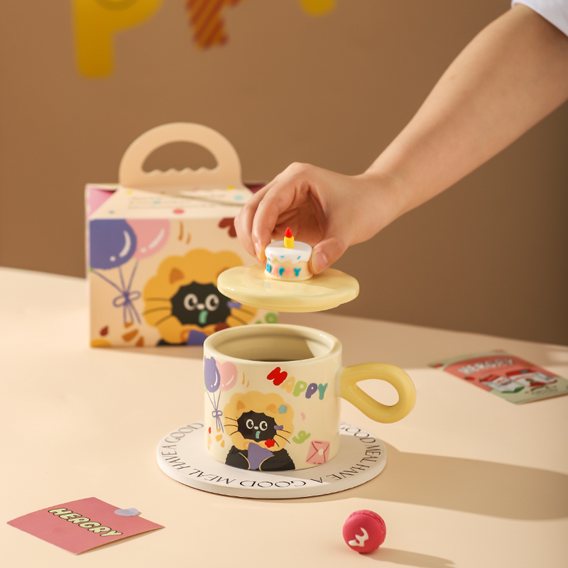 Набор: 360 мл [Чаша желаний - красный] Цветочный кот + Цветочная ложка