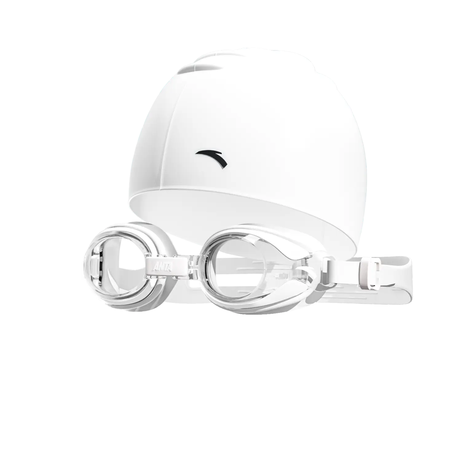 Цвет: чисто-белые очки для плавания + шапочка для плавания
