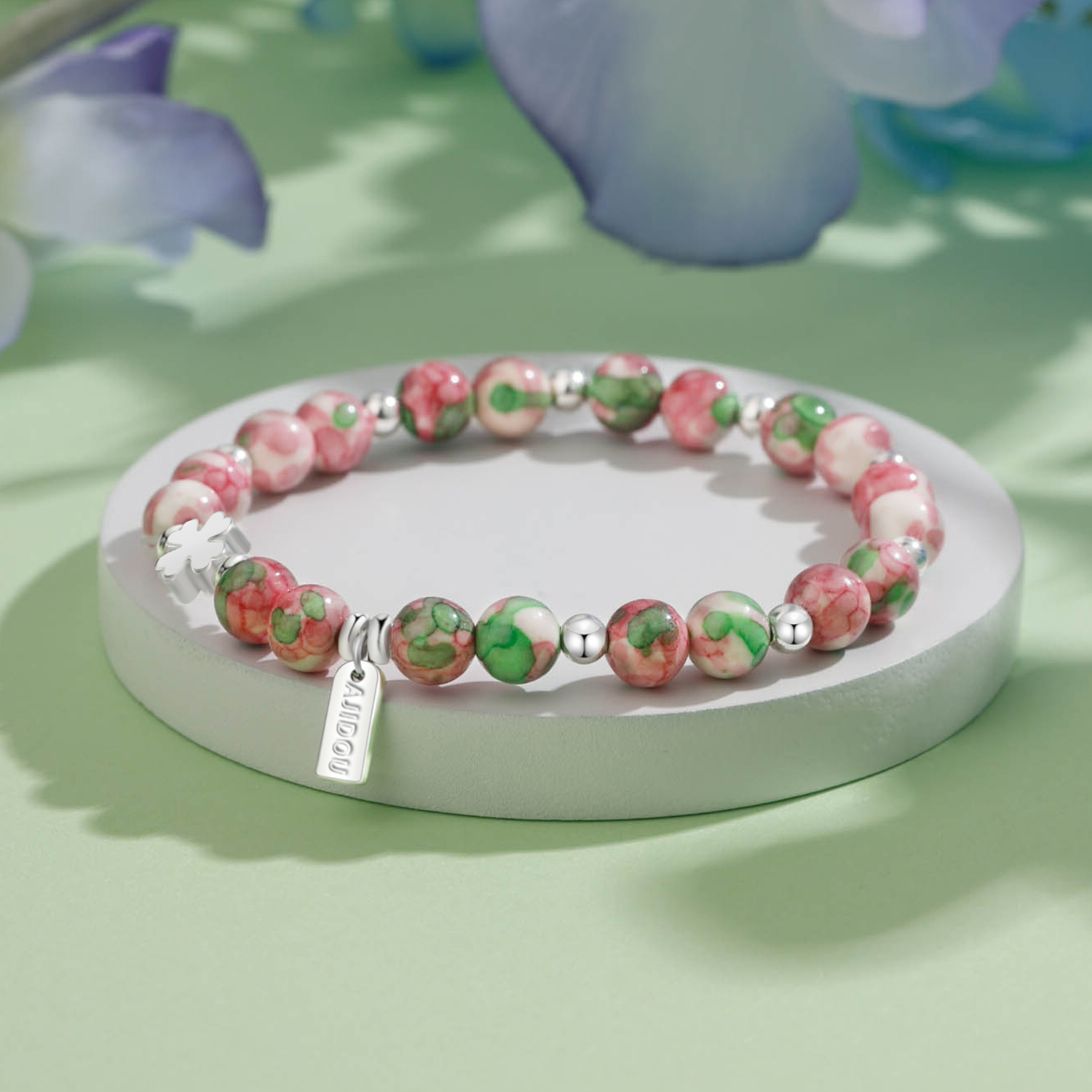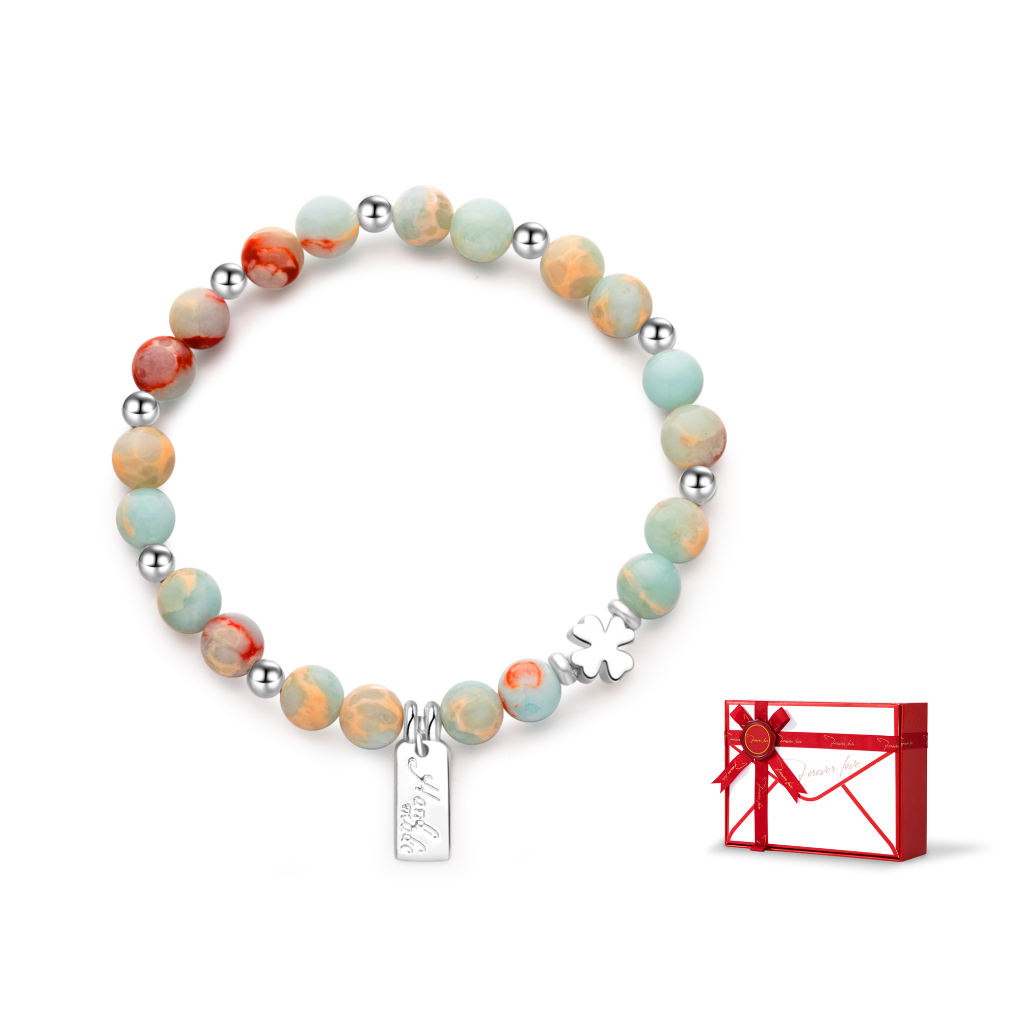 Цвет: разноцветный браслет из бисера с четырехлистным клевером, голубой [стандартная фирменная коробка]