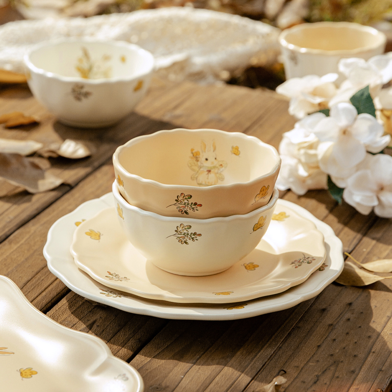 Набор: [Грибной кролик] Набор из 5 предметов на 1 персону (конфигурация тарелок 8 дюймов)