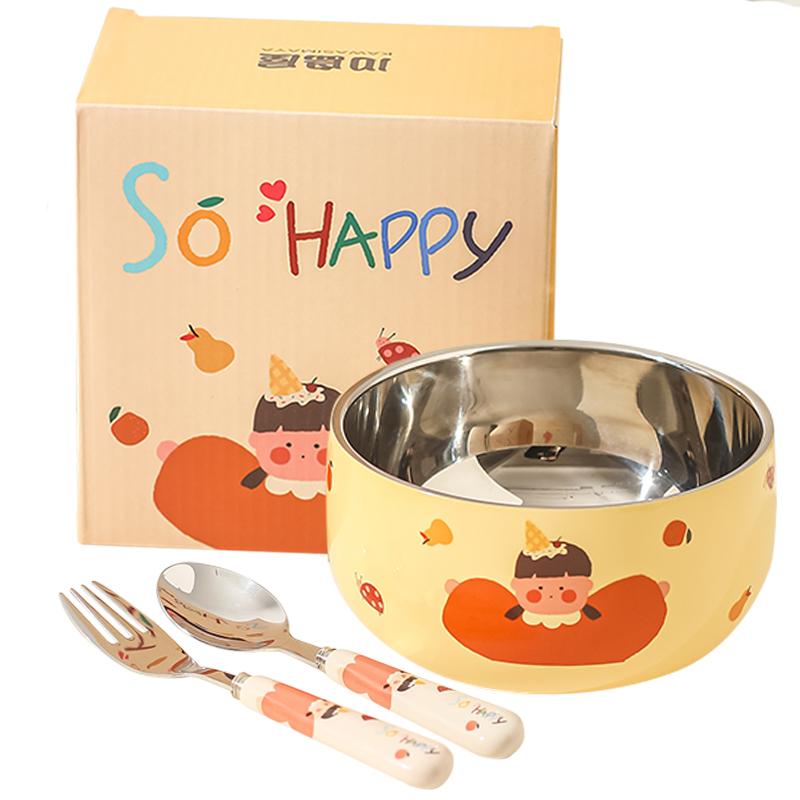 Набор: [Комплект для девочек] Детская миска + ложка + вилка