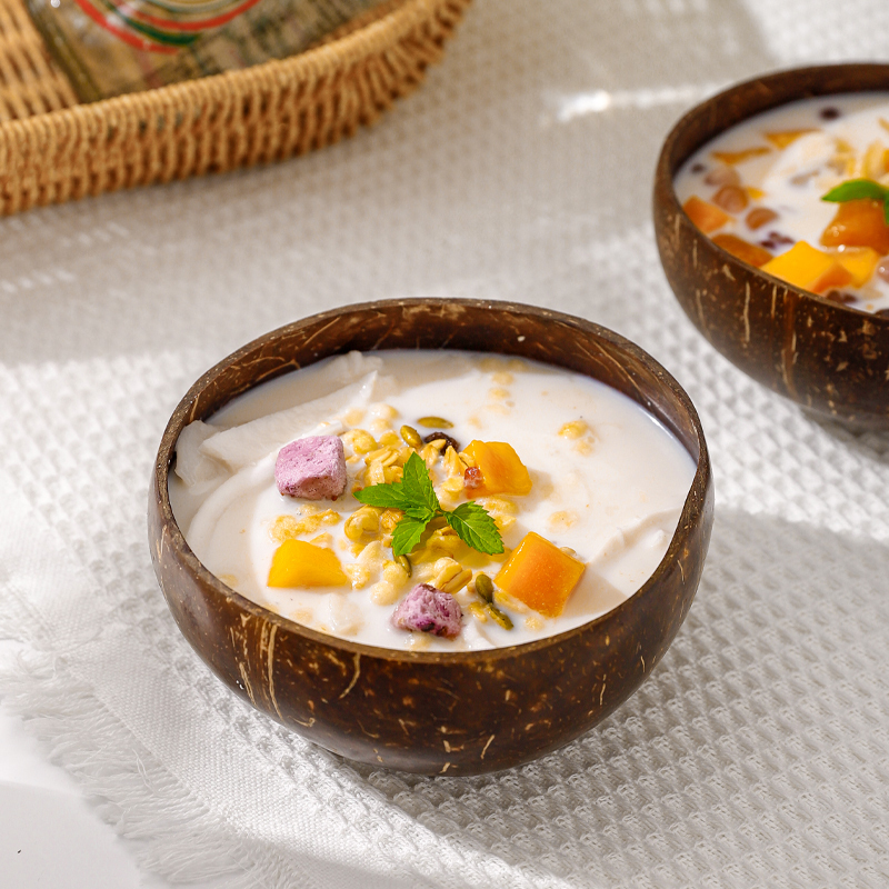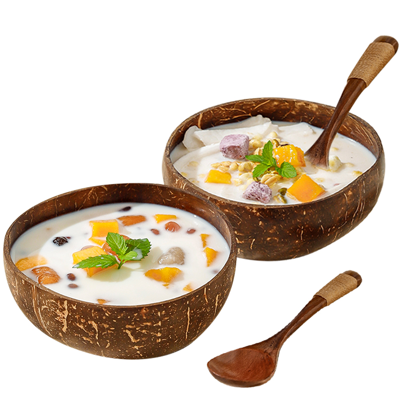 Характеристики: миска из кокосовой скорлупы в стиле Instagram *2 + ложка *2