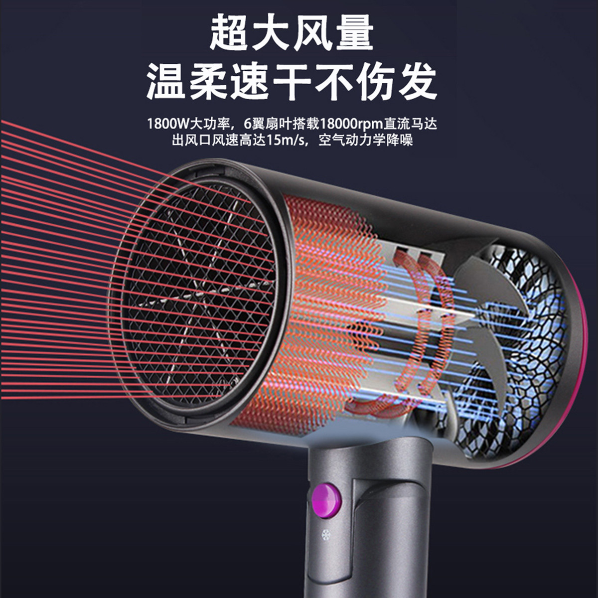 Конфигурация: 1800 Вт, три скорости, регулируемые | серый, складной | уход за волосами с синим светом
