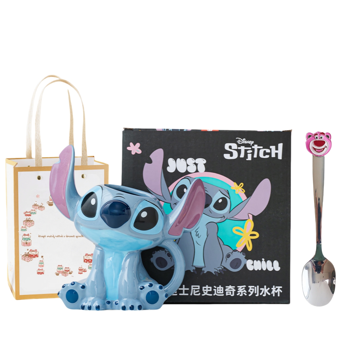 Набор: вертикальный ушной стаканчик Stitch 3D 230 мл + сумка-лопатка Lotso