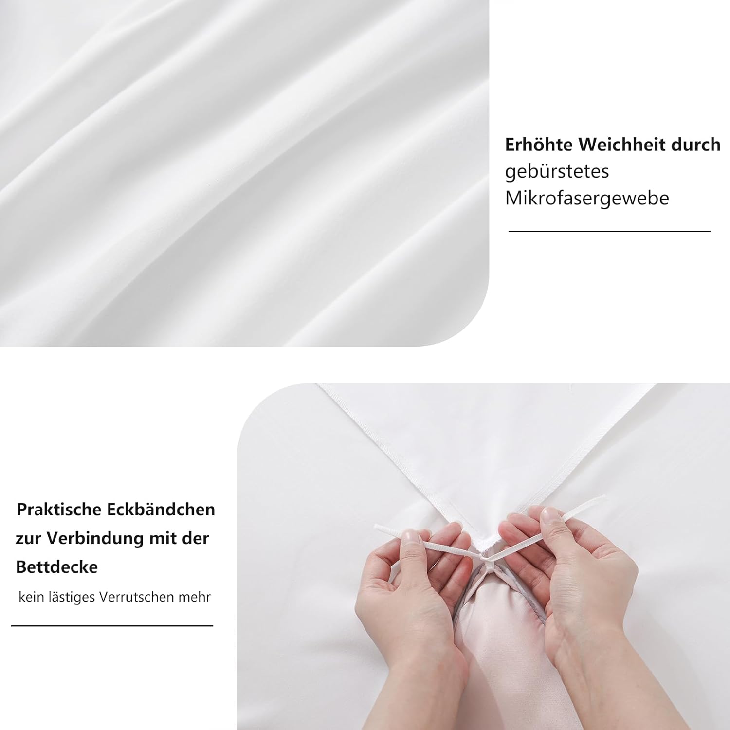 Благодаря высококачественным застежкам-молниям наволочки и пододеяльники можно быстро надевать и снимать. Кроме того, по 4 углам пришиты практичные ленты (завязки), с помощью которых одеяло крепится в нужном месте и предотвращает нежелательное соскальзывание внутри пододеяльника.