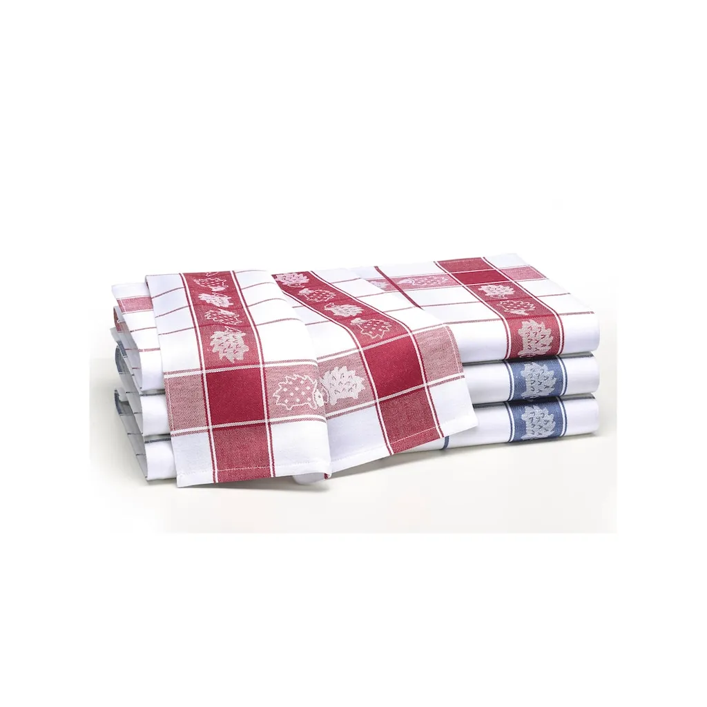 Качественные кухонные полотенца в клетку с милой бордюрой с ежиком. Размер около 50x70 см. Полульняные: 50% хлопок, 50% лен. Разноцветные.
