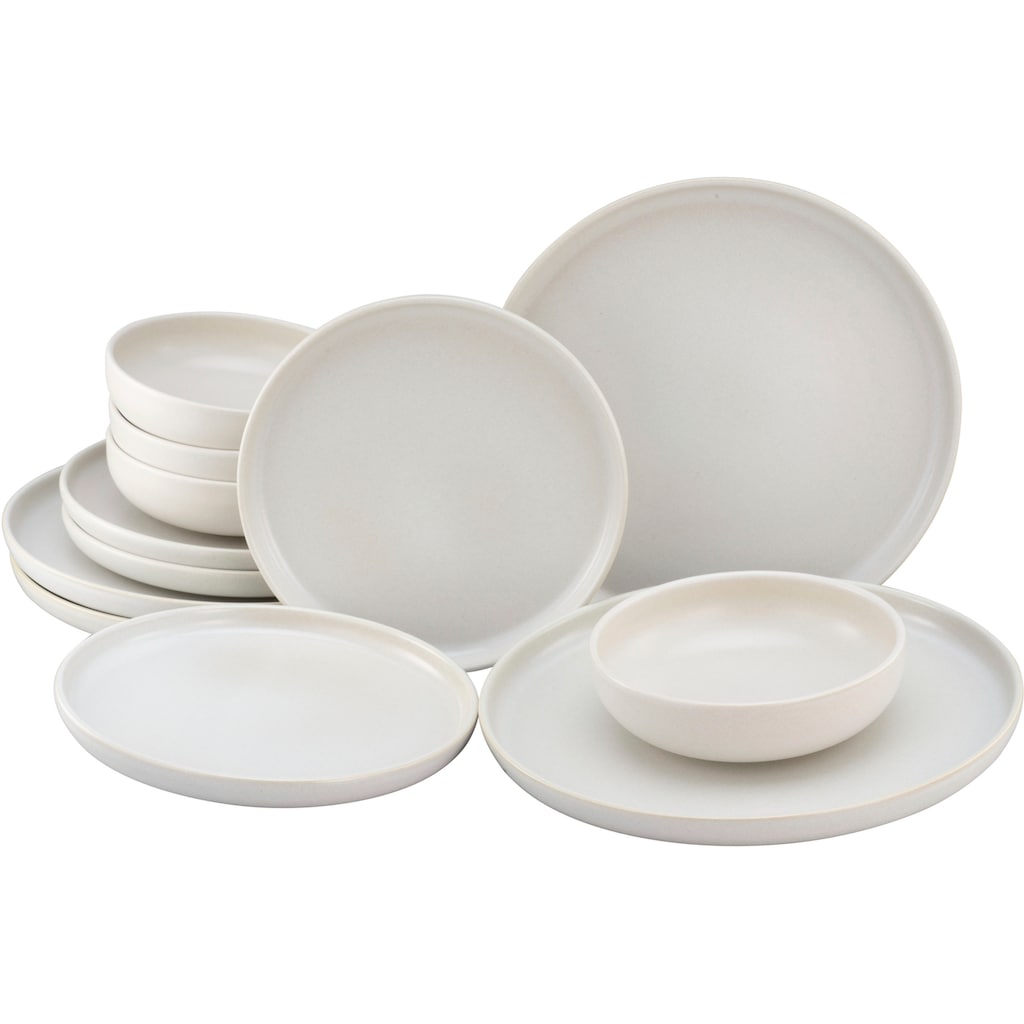 ЭЛИТНЫЙ СЕРВИЗ: 12-предметный набор включает 4 больших обеденных тарелки диаметром 28 см, 4 универсальных миски диаметром 16 см и 4 десертные тарелки диаметром 21 см.,ЧИСТАЯ ПРИРОДА: Высококачественная каменная посуда сочетается с минималистичным дизайном. Цвета отражают гармоничные тона природы.,СПЕЦИАЛЬНАЯ ГЛАЗУРЬ: Шелковисто-матовая поверхность придает серии Uno выразительный вид и подчеркивает ее минималистичную, непринужденную эстетику - каждое изделие уникально.,РАДОСТЬ: Сервиз сопровождает вас весь день - будь то завтрак, обед, ужин или перекус.,КАЧЕСТВО БРЕНДА: Наша посуда разработана в Германии и производится на отборных премиальных фабриках, чтобы обеспечить качество, которого вы ждете для вашего дома.