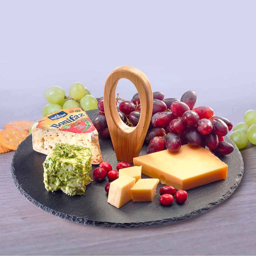 ПРАКТИЧНО - Поднос идеально подходит для использования в гастрономии или дома, чтобы стильно подавать и демонстрировать ваши блюда. С диаметром 30 см сервировочная тарелка предоставляет достаточно места для разнообразных лакомств, таких как сыр, антипасти, тапас и маленькие пирожные. МНОГОФУНКЦИОНАЛЬНО - Для безопасной транспортировки от кухни к столу сервировочная тарелка оснащена удобной ручкой, что придает ей элегантный вид. Доска из сланца с пищевым покрытием, которое обеспечивает водо- и жироотталкивающую поверхность и одновременно упрощает чистку подноса для закусок. Наслаждайтесь спокойными вечерами с близкими. Линейка продуктов Tapas + Friends предлагает не только стильную элегантность, но и все необходимое для вкусных тапас и разнообразной кулинарии.