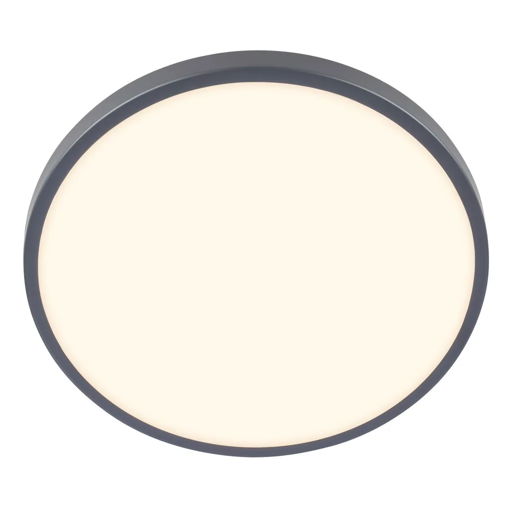 Современный светильник для гостиной антрацитового цвета с LED-платой мощностью 10 Вт (1200лм, 3000К), с диаметром 240 мм и высотой 60 мм, идеально подходит для небольших помещений или низких потолков. Элегантная металлическая обработка в антраците для стильного и современного вида. Опаловый рассеиватель обеспечивает равномерное распределение света и приятную атмосферу. Идеально подходит для жилых и спальных комнат, коридоров или кухонь с вечным, элегантным дизайном.