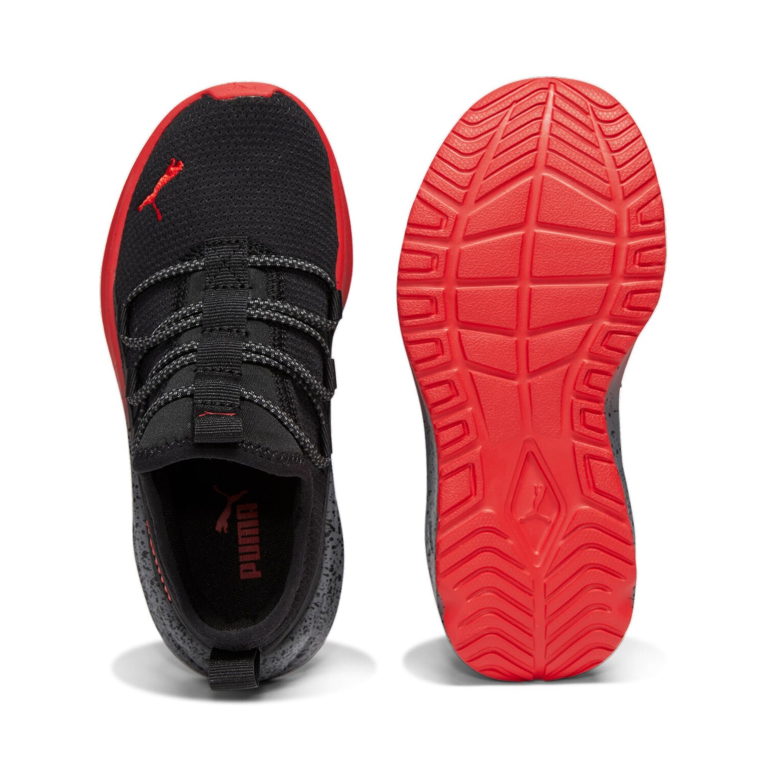 Ваш малыш будет готов к любым приключениям в кроссовках PUMA One4All Slip-On Splatter Fade. Эти кроссовки без шнуровки оснащены шнурками банджи и язычками на пятках и язычках. Логотипы PUMA расположены на носках и пятках кроссовок. Округлый силуэт с закрытым носком. Рисунок в виде брызг краски по бокам подошвы. Текстильный верх и подкладка. Синтетическая подошва. Импортированный.