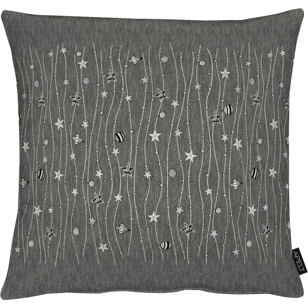Рождественский гламур для уютного проживания от Apelt. Искусно выполненный в жаккардовой технике звездный узор, элегантно украшенный мягким блеском люрекса. Наволочка оснащена практичной молнией. Материал высокого качества, который легко ухаживать, состоит из 65% полиэстера, 30% вискозы и 5% полиакрила. Можно стирать при 30°C в деликатном режиме, наволочку перед стиркой вывернуть наизнанку, сушить во влажном виде, гладить на второй точке без пара. Протестировано на отсутствие вредных веществ по стандарту Ökotex 100 и произведено в Германии.