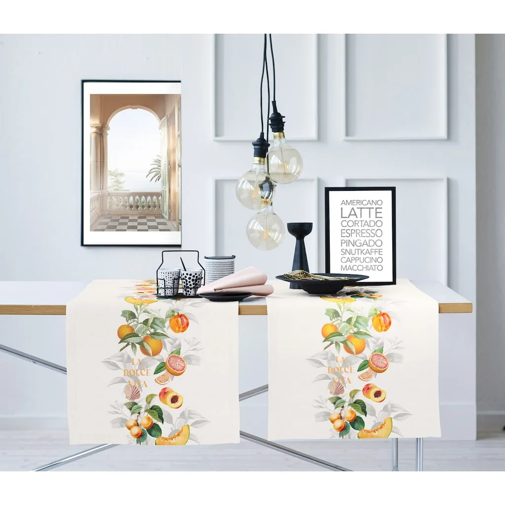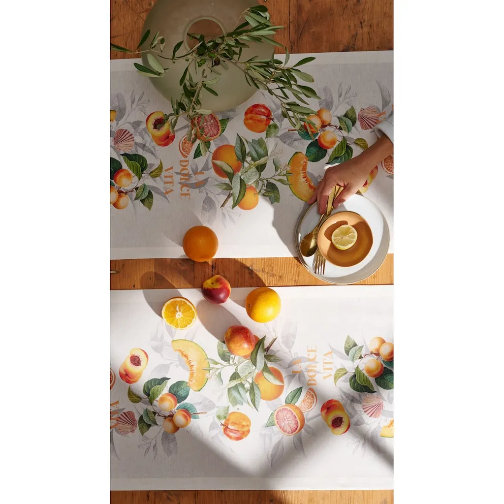 Летний дизайн, цитрусовые, дыня и персик, дорожка для стола, столовое белье