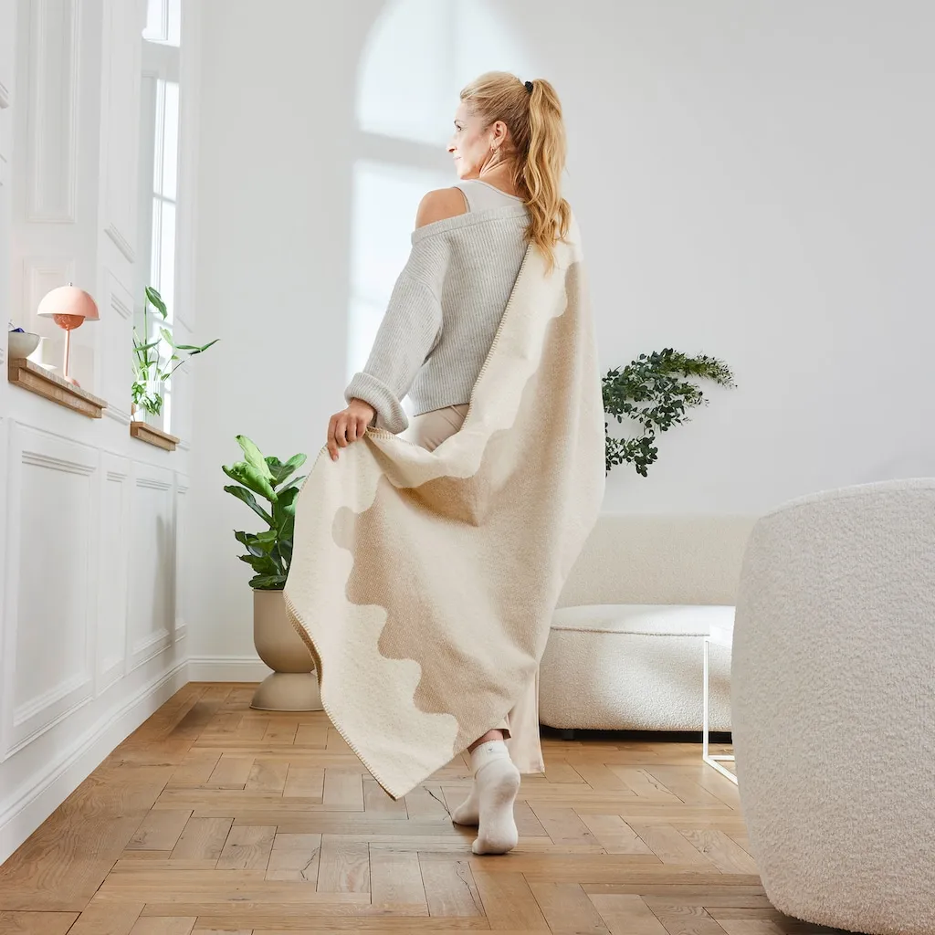 Придайте вашему дому тепло и стиль с этим элегантным пледом в естественных, сдержанных бежевых тонах. Гармоничный волнообразный узор, искусно оформленный в виде рамки, создает успокаивающий и приветливый вид, который идеально впишется в любой интерьер. Его можно стирать в стиральной машине при температуре до 30°C, он также подходит для сушки в сушильной машине.